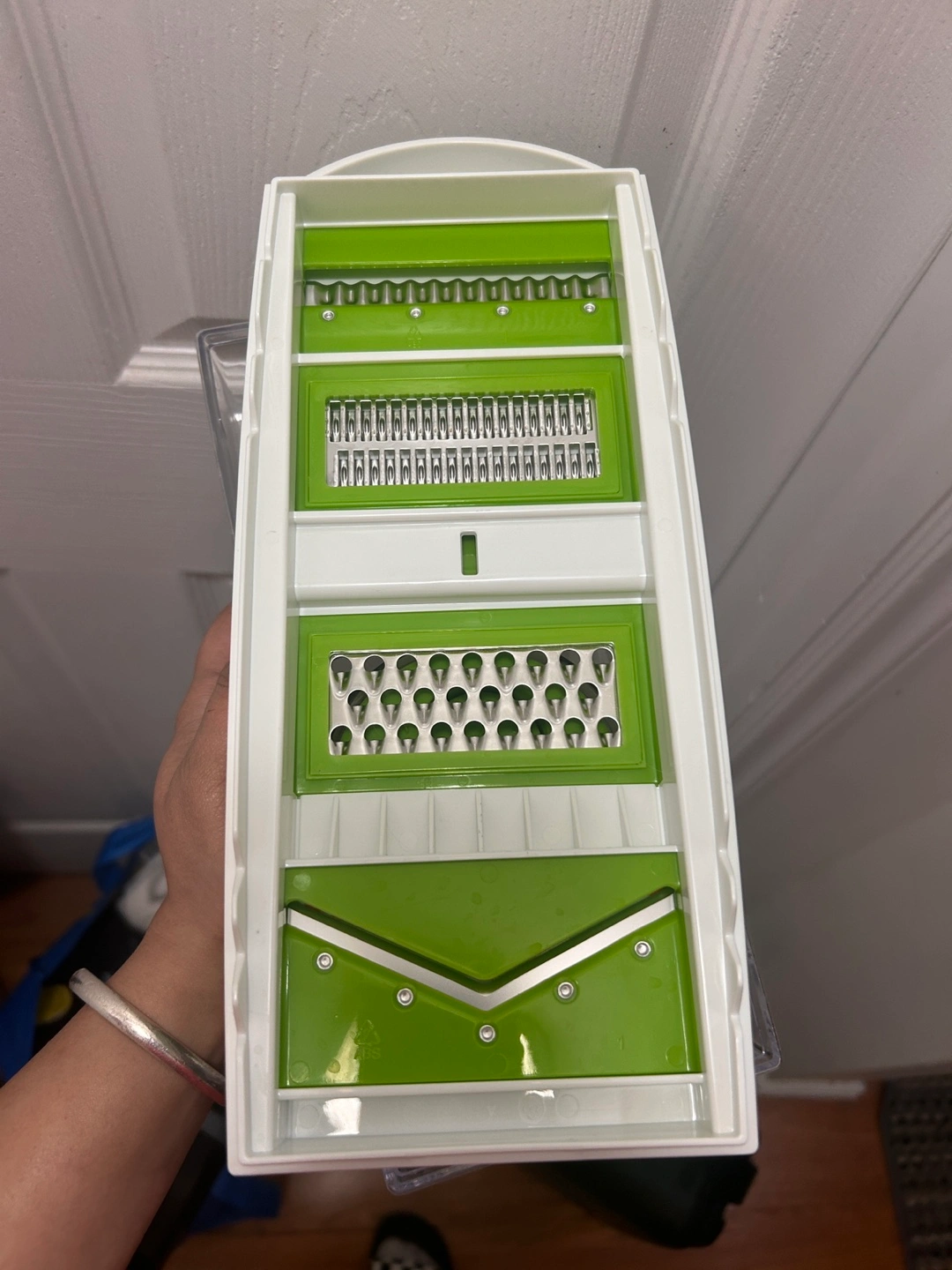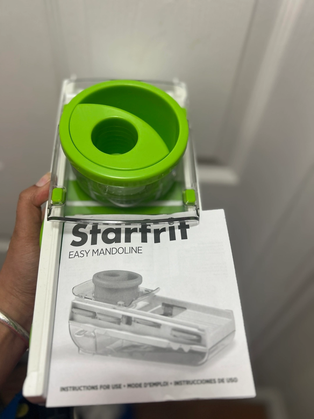 Brand new Starfrit Easy Mandoline. Green and white. Multiple slicing blades. Great for vegetables and fruits. Never used it. Check out other listings to bundle up!!