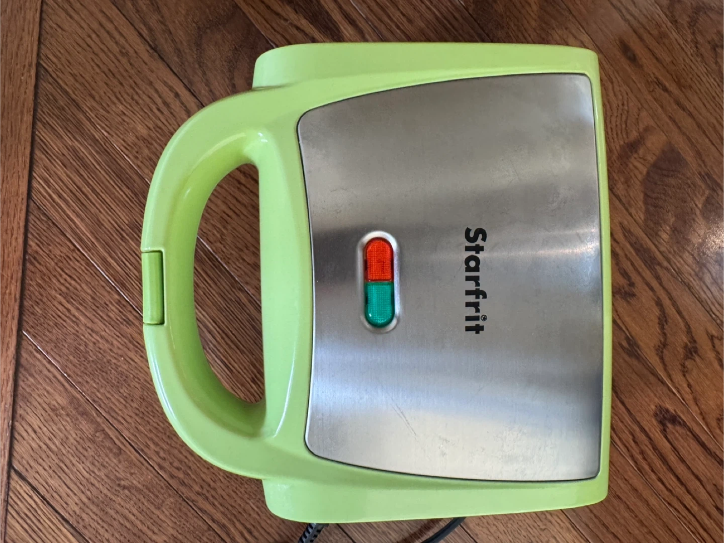 Selling a Starfrit sandwich maker in a fun green colour! It's perfect for making quick and easy sandwiches. The non-stick plates make cleanup a breeze. Great for a fast breakfast or snack!