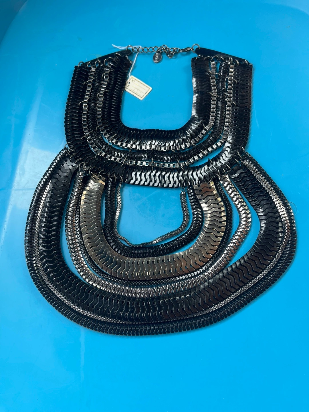 Necklace with a variety of shapes and sizes. Various metal finishes. A perfect piece for any formal occasion, especially when you are looking to add a luxurious touch to your look.
