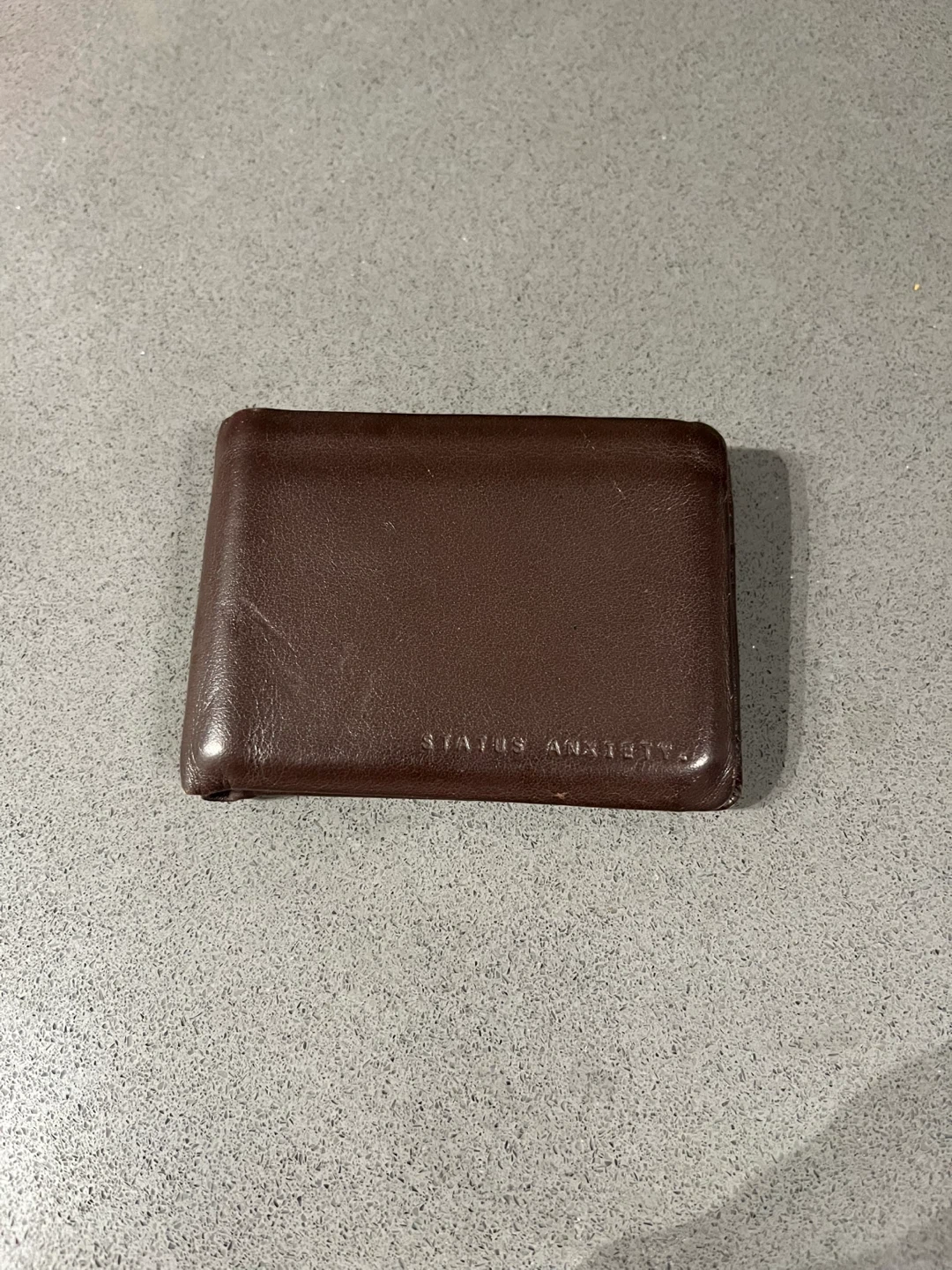 Selling a Status Anxiety brown leather wallet. It's in good condition and has lots of space for cards and cash. The wallet is made of Italian leather.