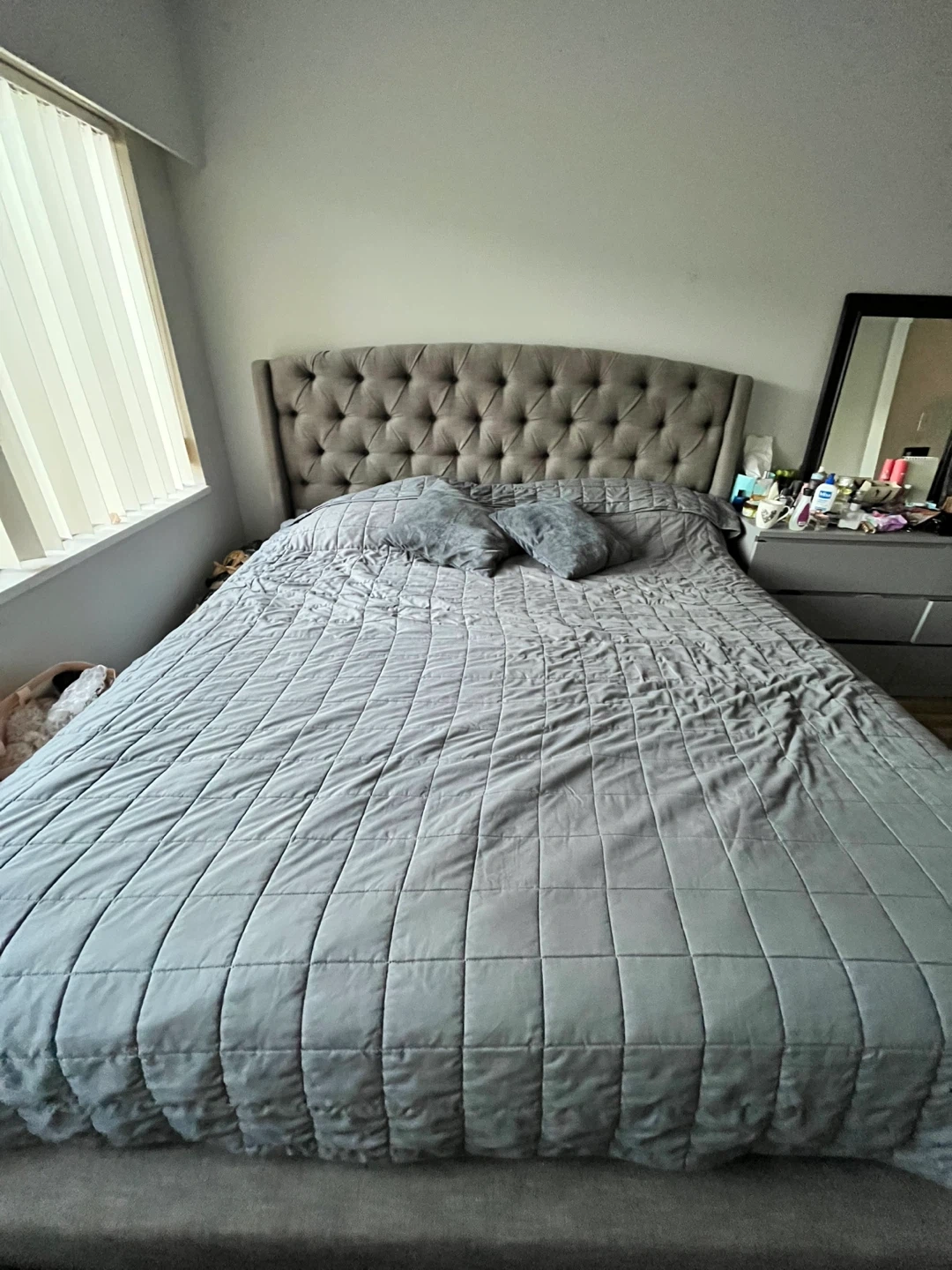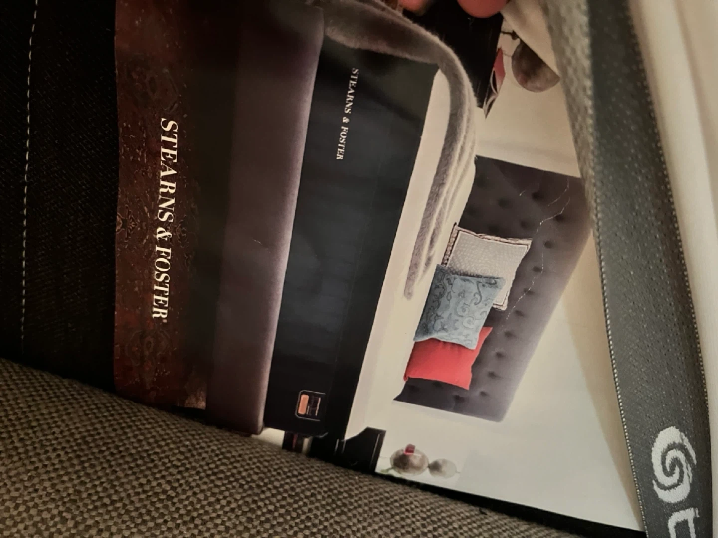 Selling a Stearns & Foster king size bed. It's in great condition and super comfy! The bed features a tufted headboard. It also comes with the mattress which had a protector all the time. It still has it on but we will remove it upon sale.
