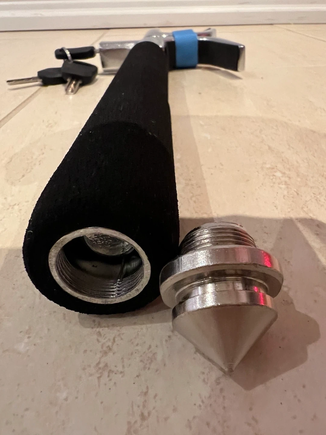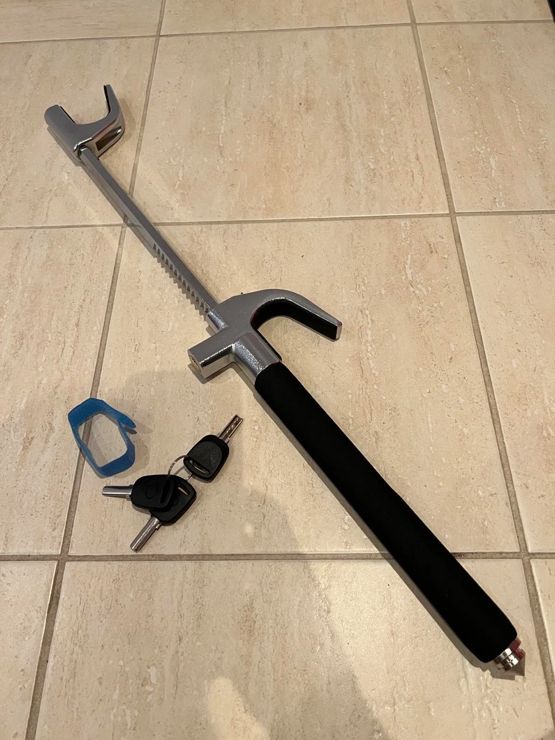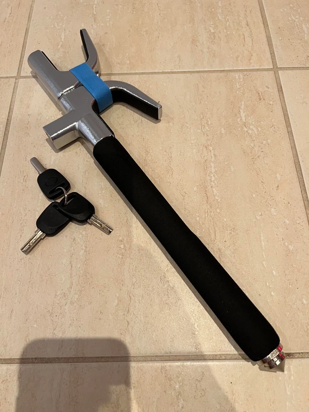 Selling a steering wheel lock, complete with its set of keys! It's in good condition and ready to use. Great for added security for your vehicle