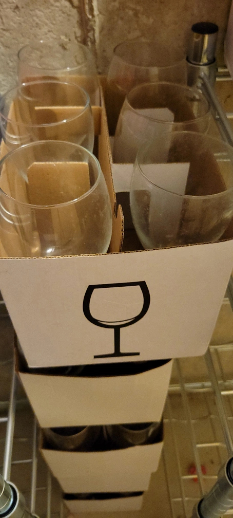 Selling a set of six wine glasses. They come in their original box, making them easy to transport and store. Perfect for your next dinner party or just enjoying a glass of wine at home! used once for a wedding and already washed