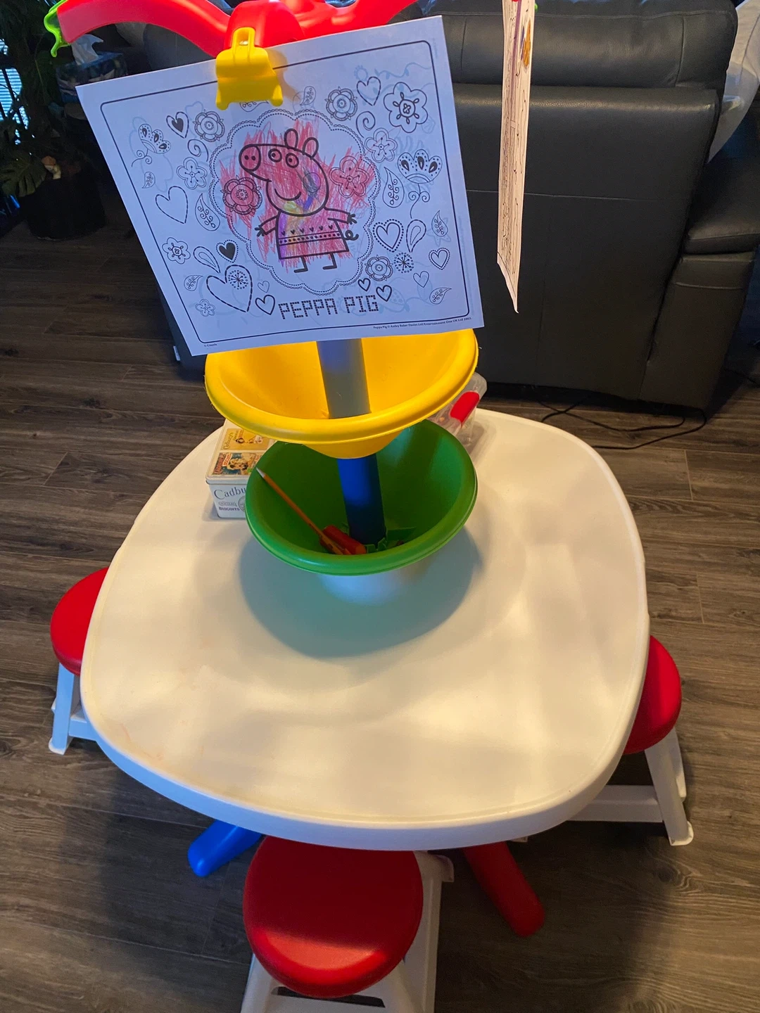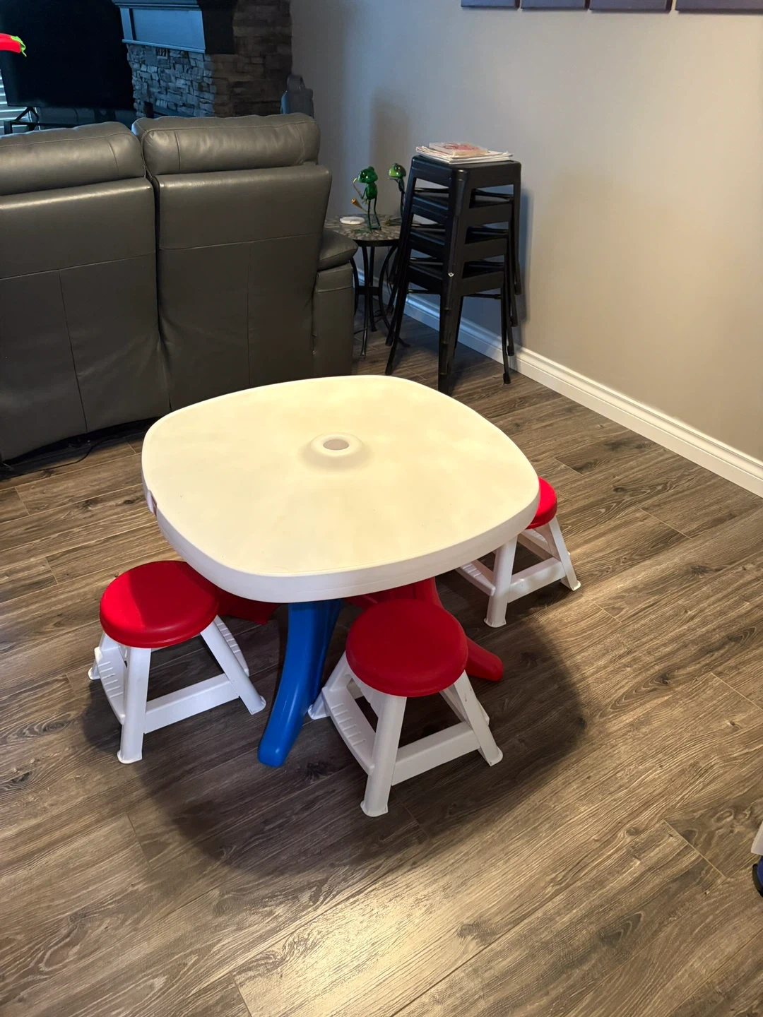 Selling a Step2 play and activity table that comes with 3 matching stools. Perfect for kids to do arts and crafts, eat snacks, or just hang out! Great for playrooms or any space where kids like to gather and have fun