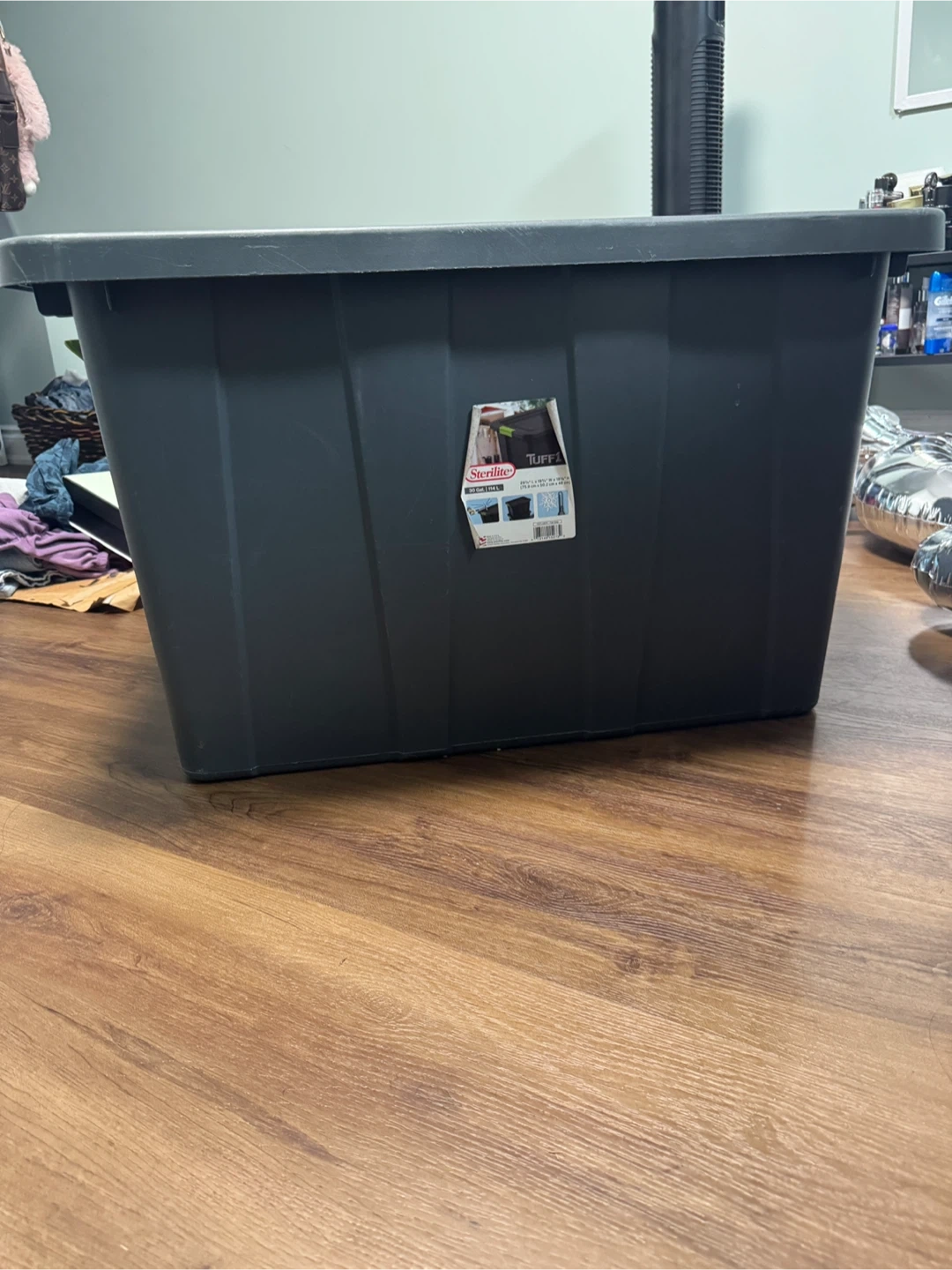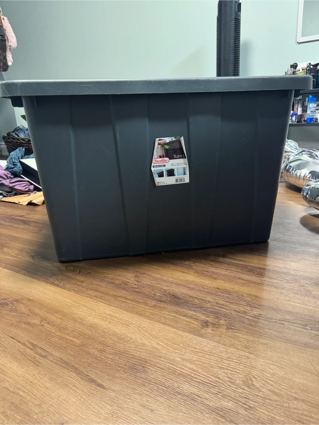 Selling a Sterilite Tuff Box storage container. It's great for storing all sorts of items, from seasonal decorations to camping gear! It's in good condition and ready to help you get organized
