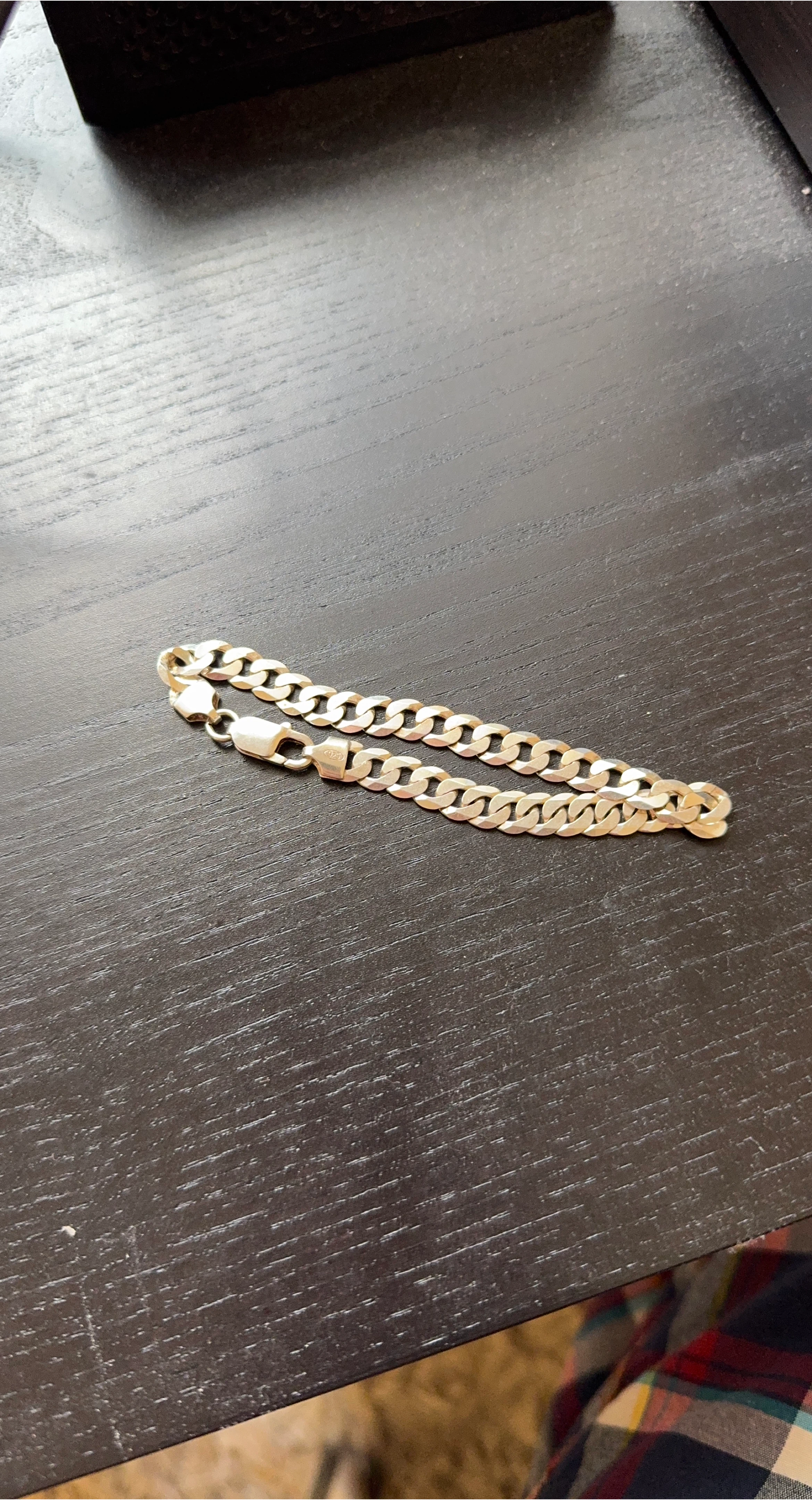 Selling a sterling silver curb chain bracelet. It has a lobster clasp closure and is marked with '925' and 'Italy'. 12 grams