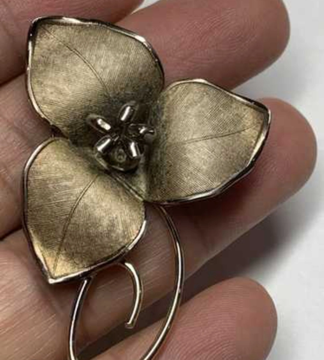 Selling a lovely floral brooch marked Sterling. It's a beautiful gold colour and in excellent condition. Perfect for adding a touch of elegance to any outfit!