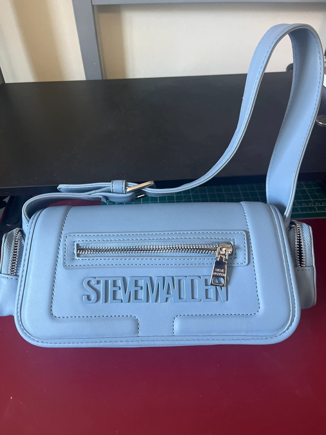 Check out this cute Steve Madden BCliff crossbody bag! It's a stylish light blue colour and perfect for carrying your essentials. The bag is in great condition and ready for a new home