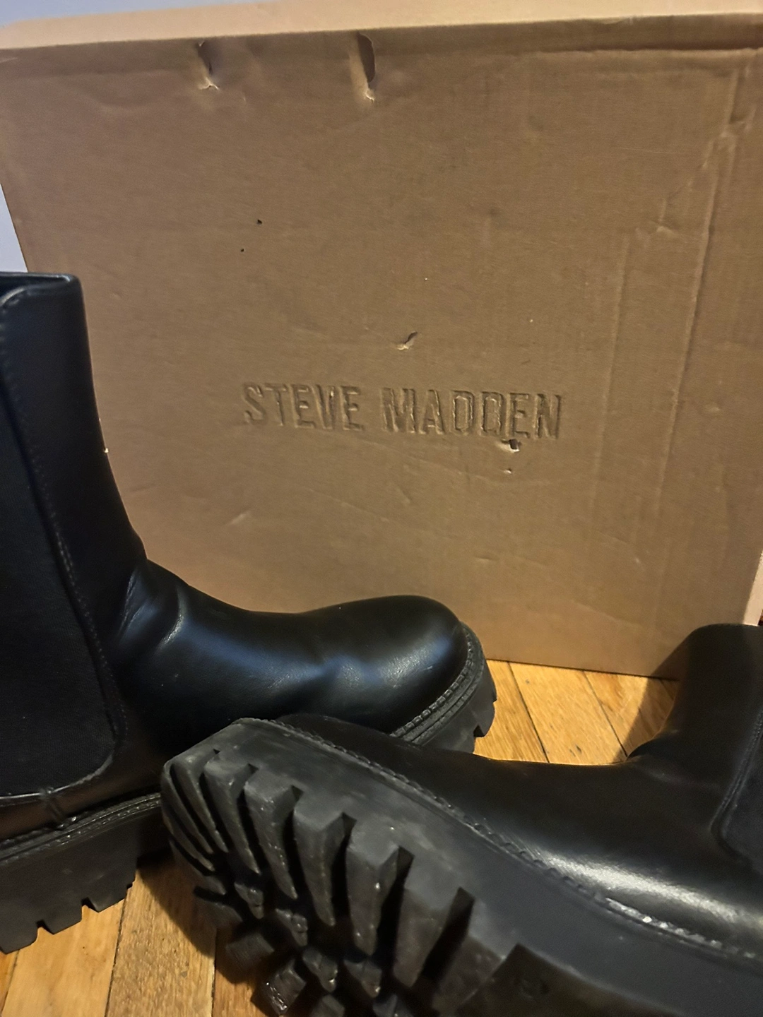 Black Chelsea boots by Steve Madden worn once They are in great condition.