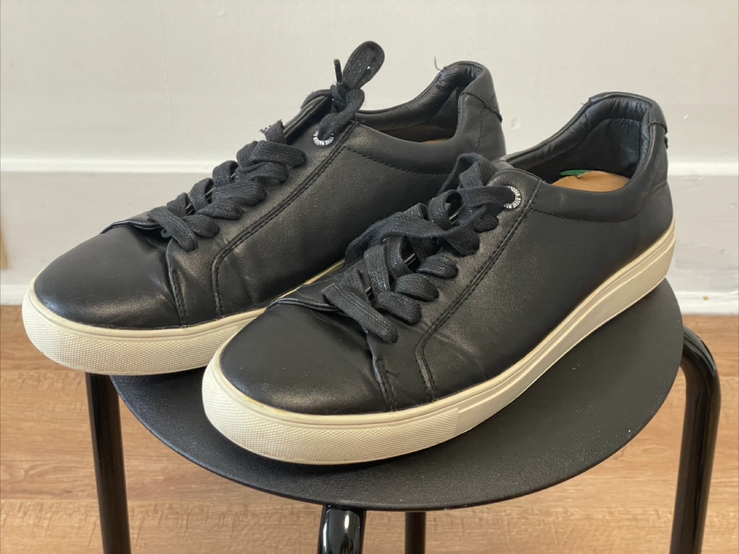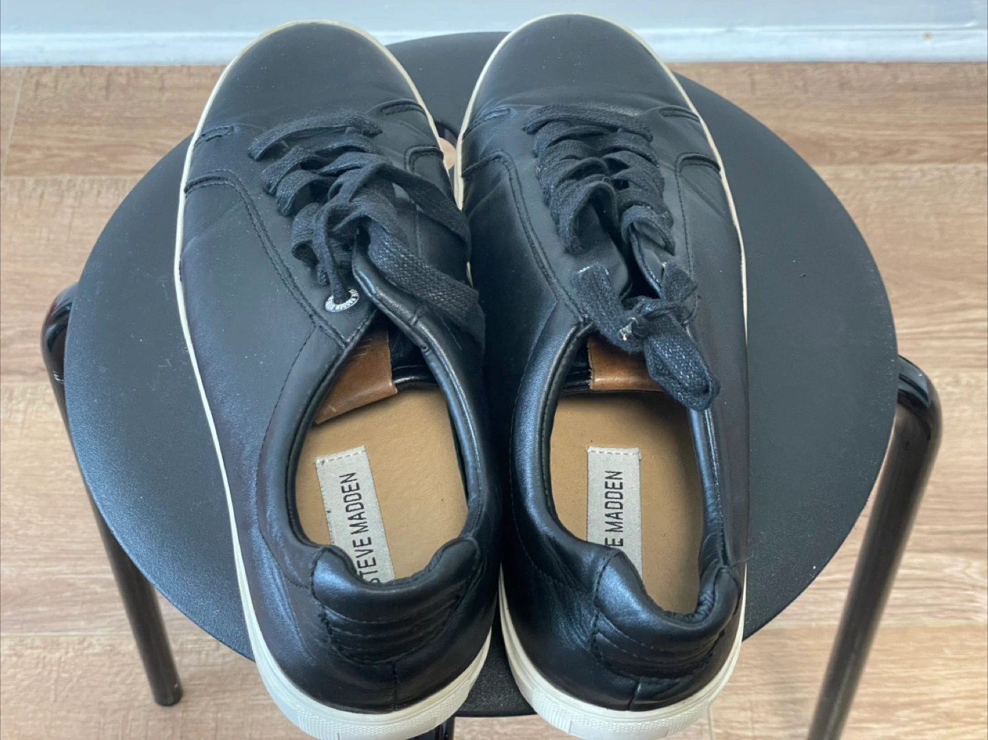 Selling a pair of Steve Madden sneakers in black leather. They're in great shape and are a size 9. Perfect for everyday wear!