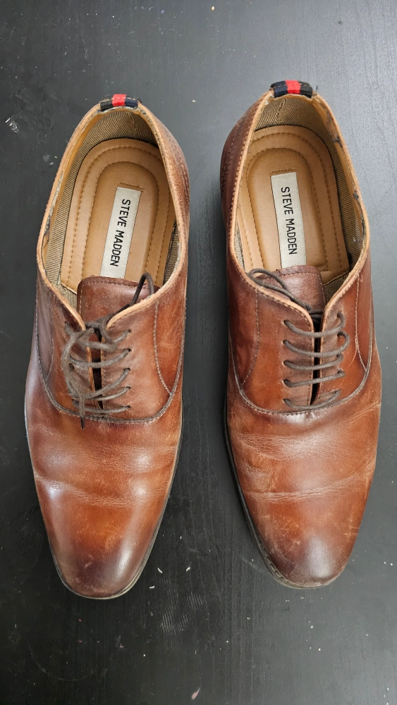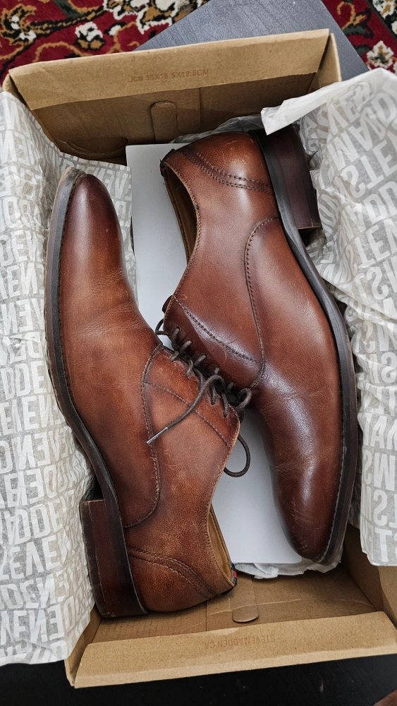 Selling a pair of Steve Madden Driscoll shoes in tan leather, size 10.5. They come with the original box. These are stylish and in good condition! Just worn twice! originally about for 150$