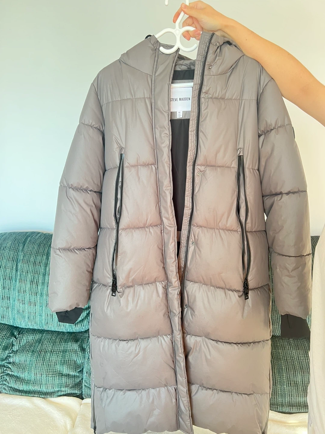 Selling a Steve Madden puffer jacket in great condition! It's a stylish and warm jacket, perfect for the colder weather. The size is M.