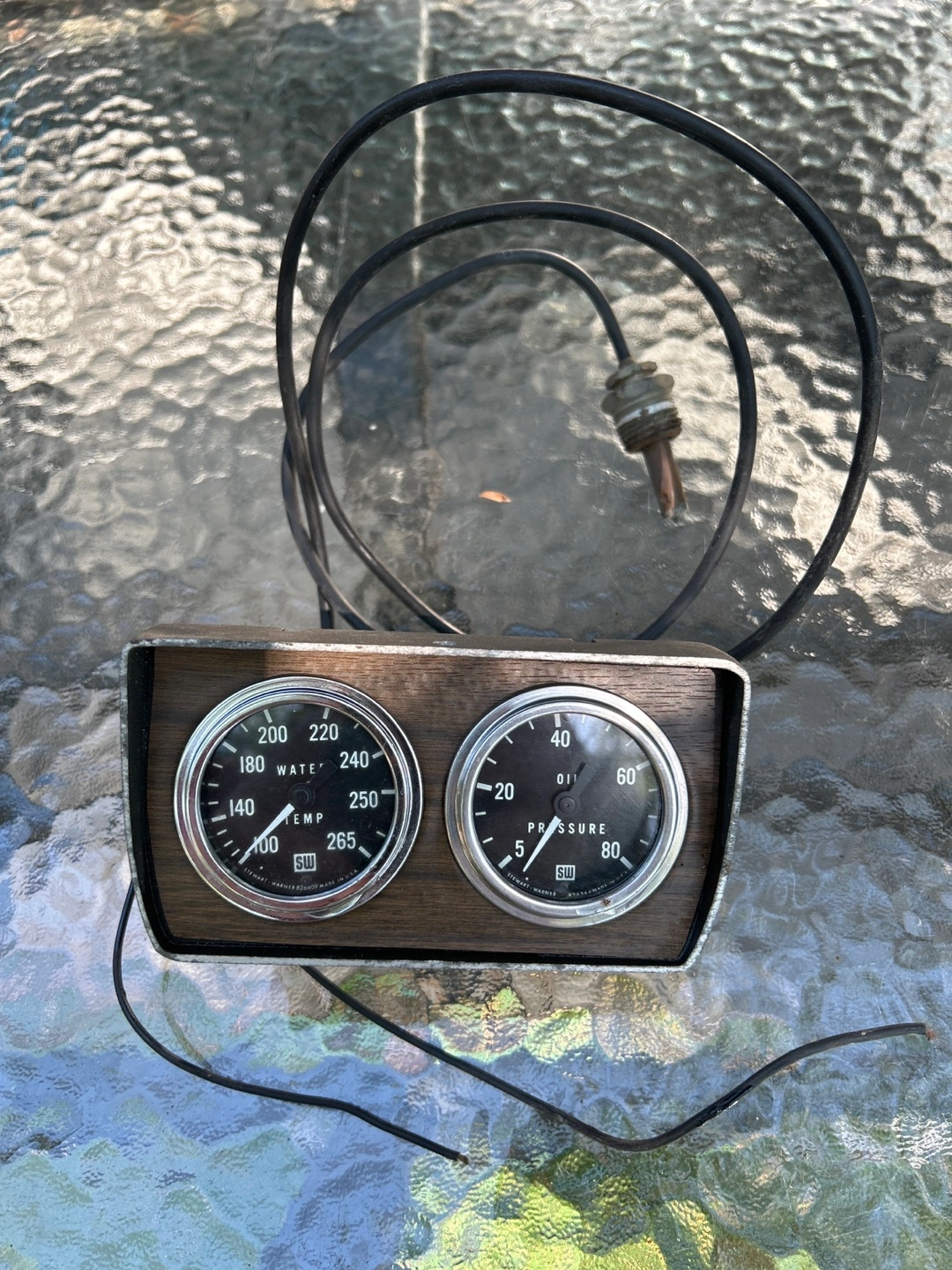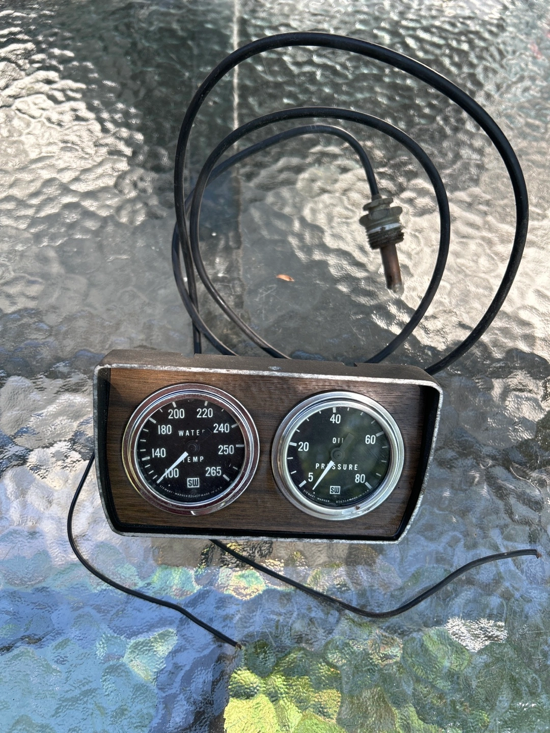 Selling a Stewart Warner gauge set. It appears to be a temperature and pressure gauge. Please see photos for condition