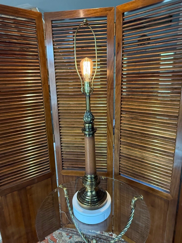Illuminate your space with this elegant used Stiffel table lamp, showcasing a timeless design with a wood and brass body and a decorative finial. Known for quality craftsmanship, this lamp features a rotary switch for adjustable lighting. Key Features: * Brand: Stiffel * Style: Traditional * Material: Wood and Brass * Switch Type: Rotary Elevate your home decor with this classic piece! Please note that this is a previously owned item with some signs of wear. If the ad's up, the lamp's available!