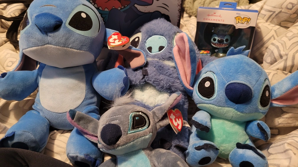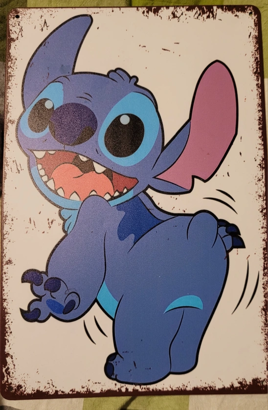 Selling a variety of adorable Stitch plush toys! There's a classic blue Stitch, a unique grey and blue Stitch, and even a special edition Funko Pop of Stitch in his box. Metal sign and a Stitch that helps to calm you with slow breathing and a glowing tummy. Perfect for any Lilo & Stitch fan or collector!