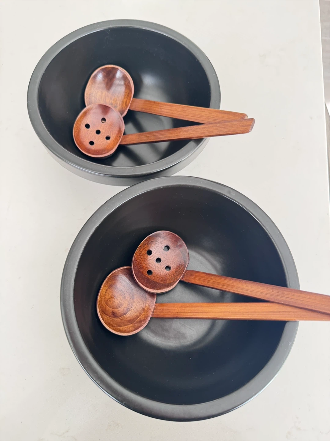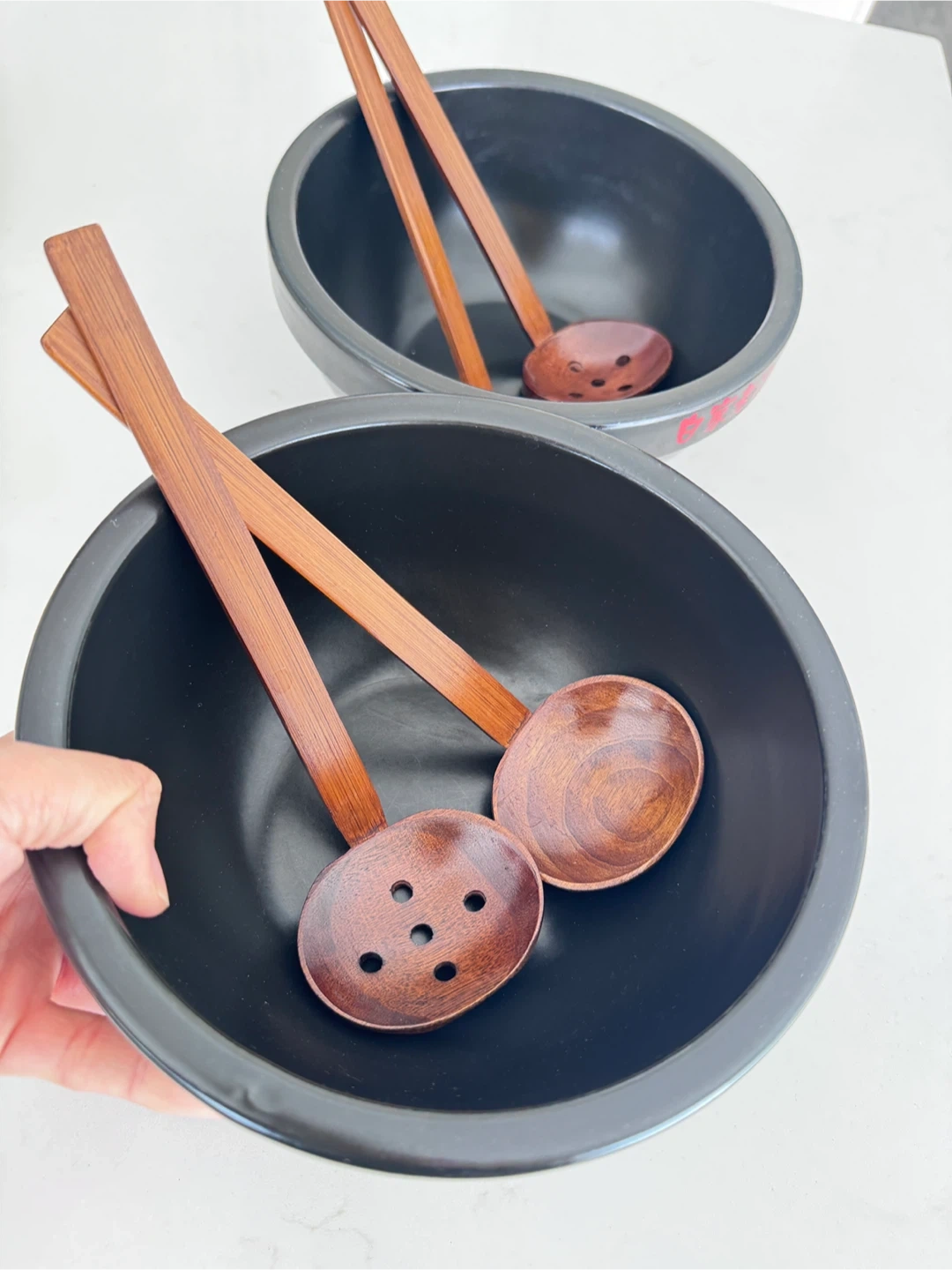 Selling a set of two stone ramen bowls, each with its own wooden ladle! They're in great condition and ready for your next noodle night!