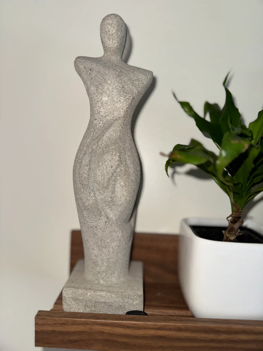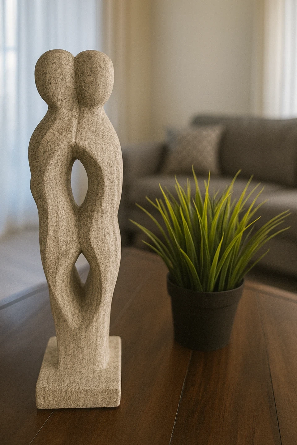 A beautiful stone sculpture, perfect for adding a touch of elegance to any room! Its unique design makes it a great conversation starter and a lovely addition to your home decor