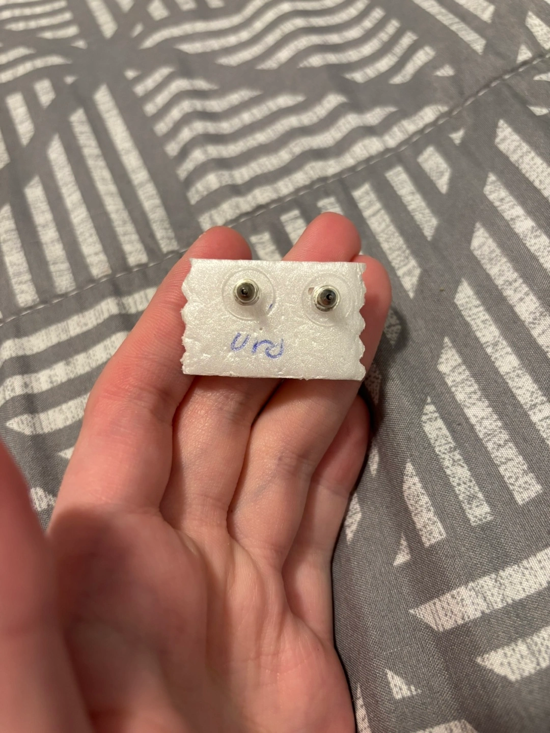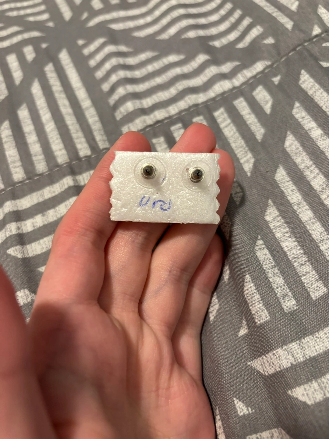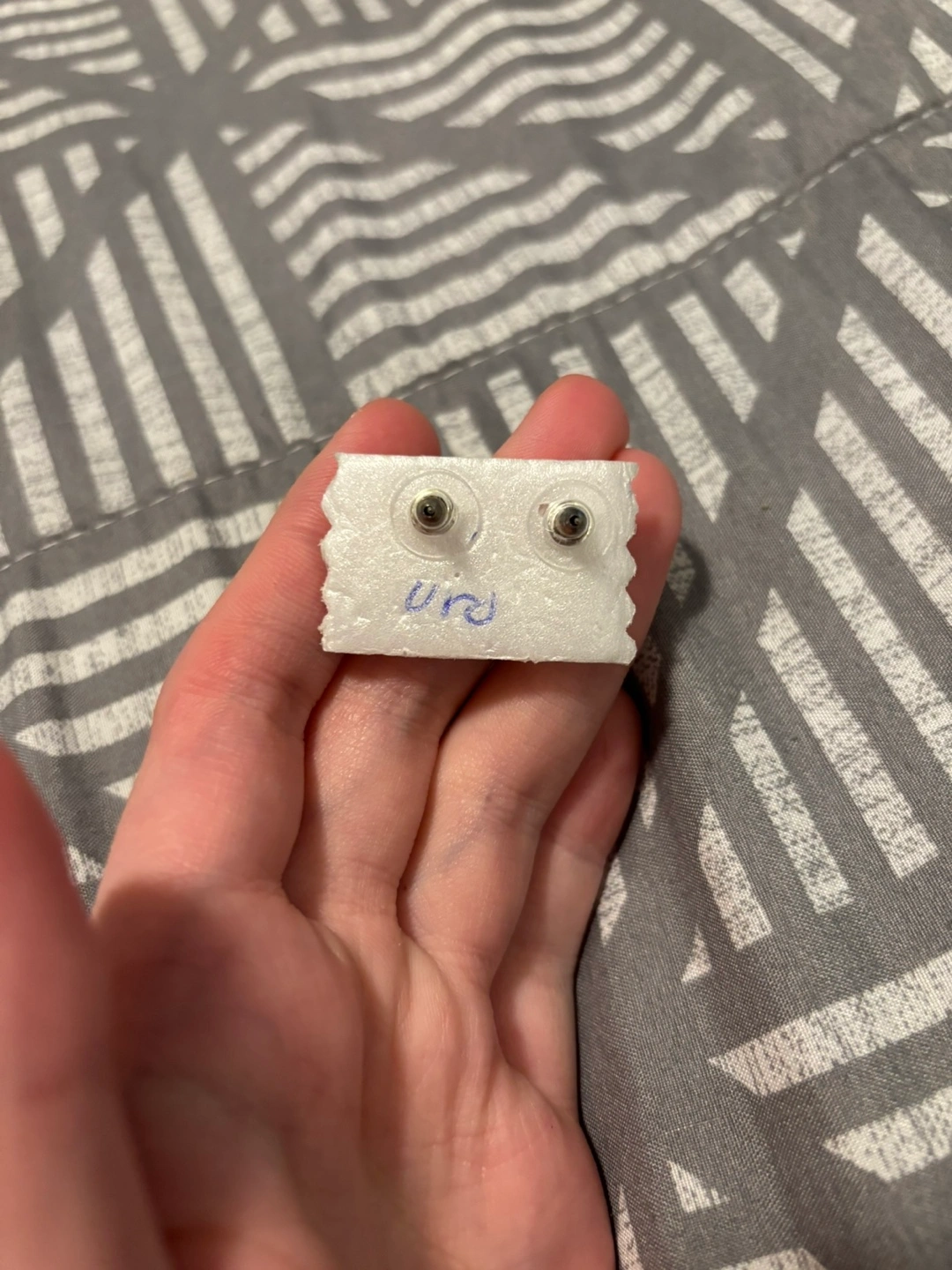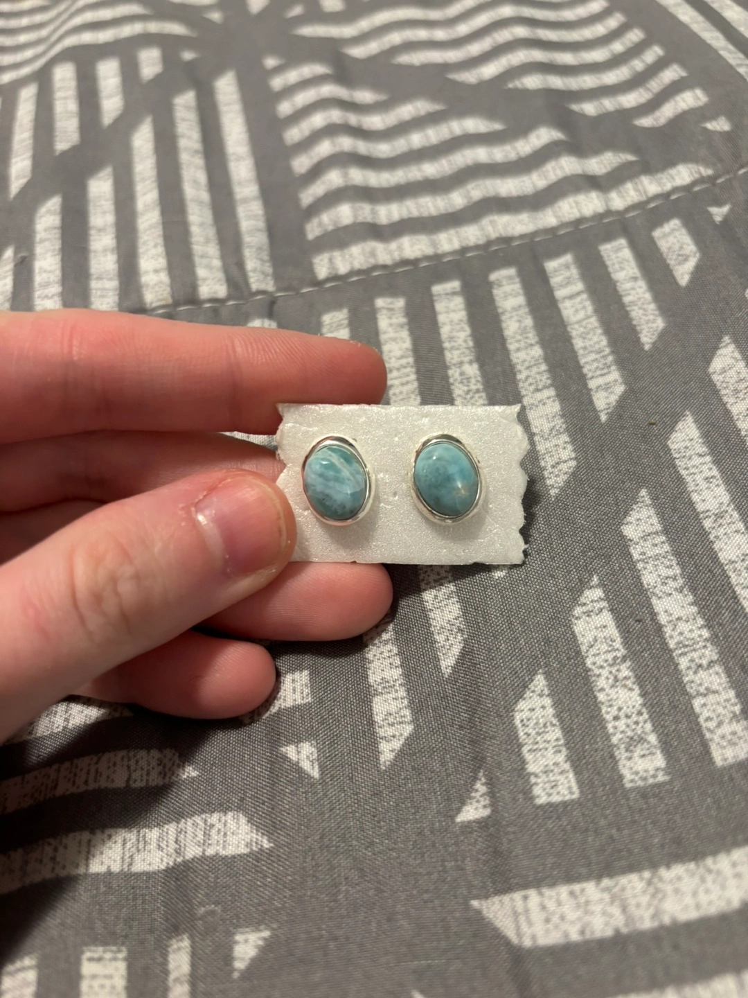 A pair of round stud earrings. The stones appear to be a light blue colour, with silver coloured metal. You will find these earrings lovely to wear as you relax.