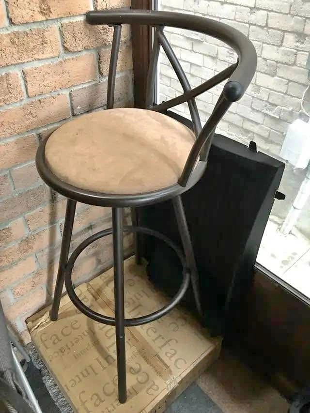 This counter stool features a sturdy metal frame and a comfortable, padded swivel seat. The stool is in like-new condition. It has a circular footrest and a stylish backrest design. * Sturdy metal frame * Padded swivel seat * Circular footrest * Stylish backrest And a friendly reminder: If you're seeing this ad, the stool is still up for grabs!