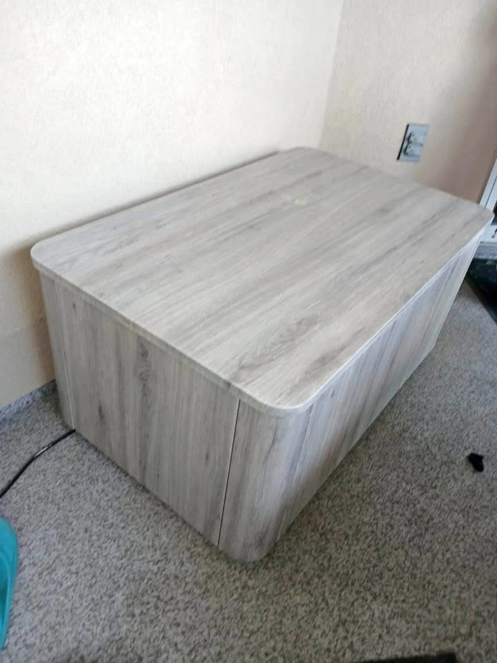 Made from strong plywood and wrapped in laminate, this versatile coffee table has smooth-rolling castor wheels so you can move it around easily. Two drawers (one on each side) with top-of-the-line soft-close hardware Sturdy enough to also use as extra seating or a bench A few small chips in the laminate, but overall in good condition Size: 36.5" long × 23" wide × 17.5" tall Pick up only, cash preferred.