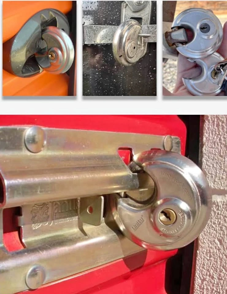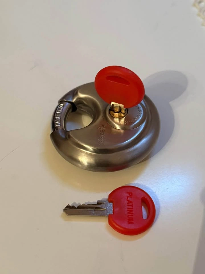 Discus style heavy duty padlock with 3 keys. Great for storage units, sheds, fences, indoor or outdoor. Location QEW & HWY 10