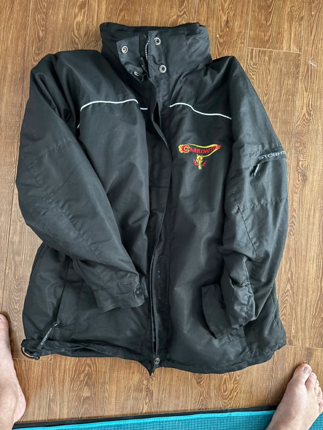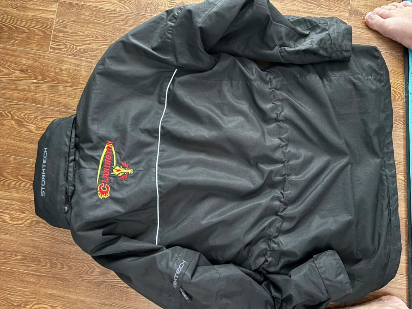Vintage Clarington flames Stormtech jacket in black. XL ladies . 3 piece , zip out liner . Great for cold early morning hockey games