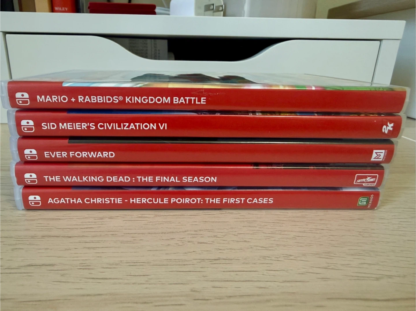 Includes: Mario + Rabbids Kingdom Battle Civilization VI Ever Forward The Walking Dead: The Final Season Agatha Christie: Hercule Poirot – The First Cases For pick-up only. No trades.