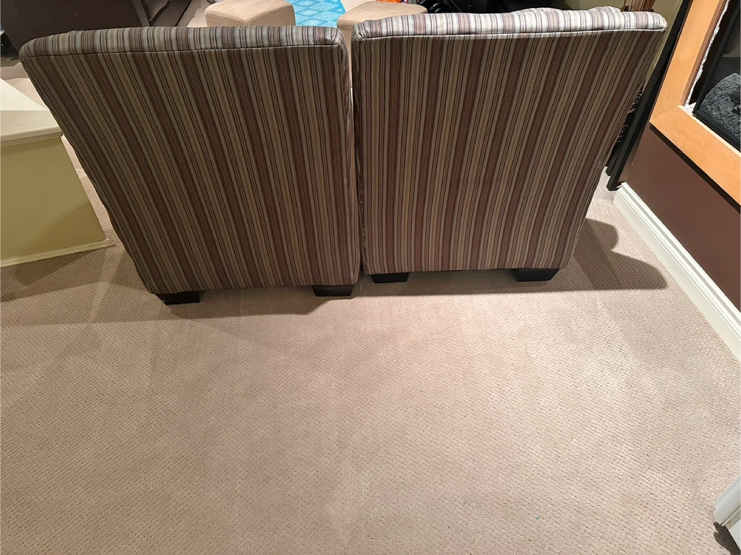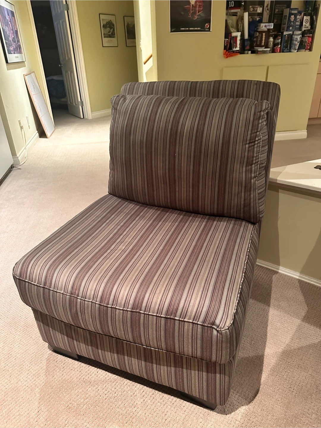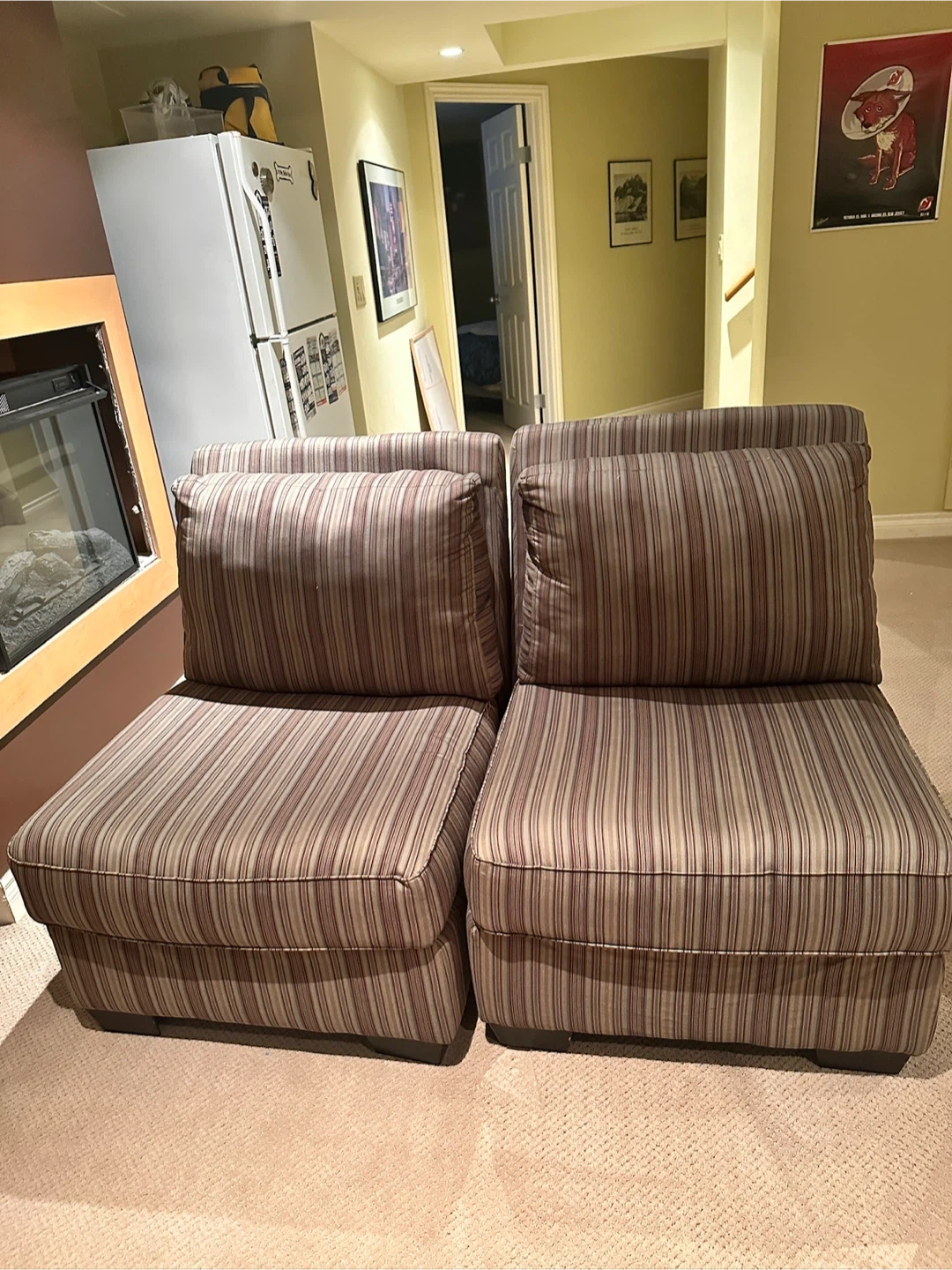 Selling a set of two armless accent chairs. They feature a striped pattern and are in great condition. Perfect for adding extra seating to any room in your home!๐ฅ๐ฅ