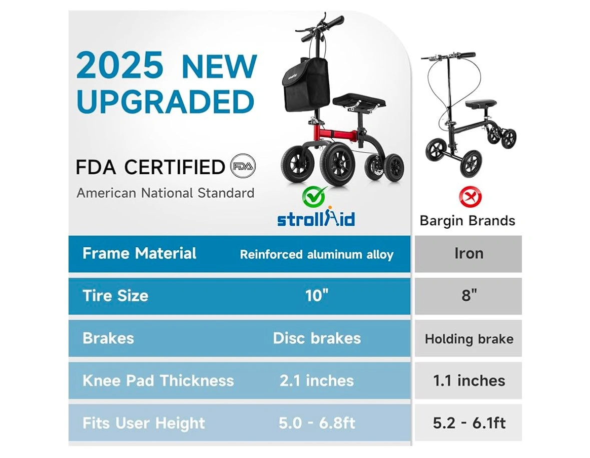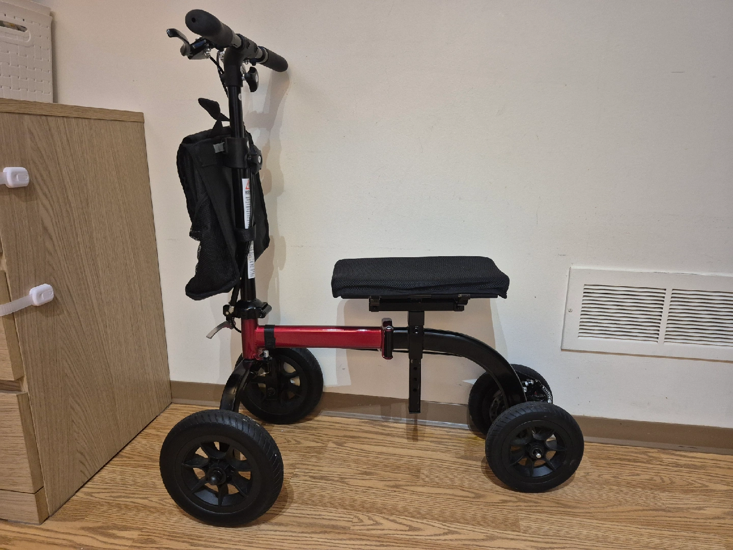 Selling a Stroll Aid knee scooter. It's in great condition and ready to help you get around! It features a comfortable seat and a convenient bag for carrying essentials. Perfect for anyone recovering from a foot or ankle injury. 300 pound capacity.