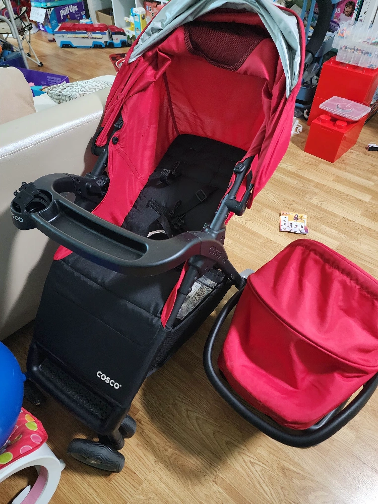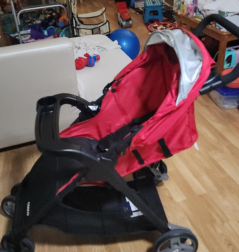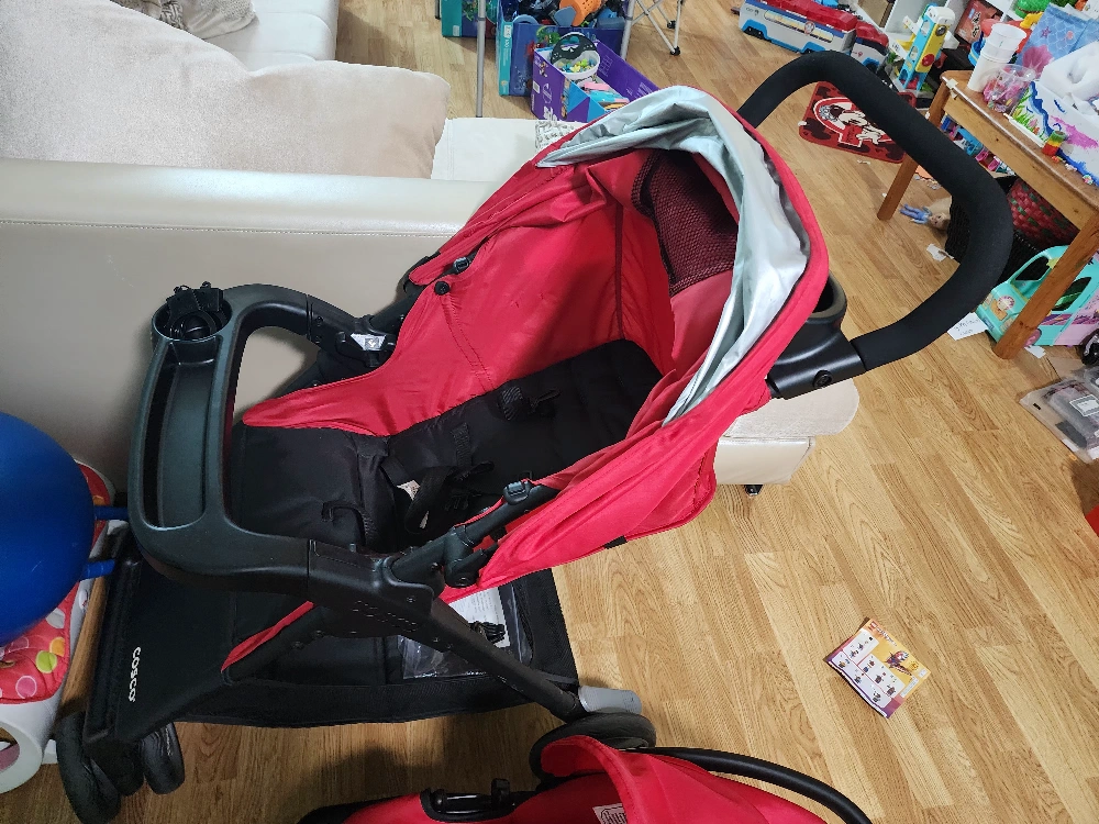 Selling a stroller in a vibrant red and black colour scheme It looks like it's in good condition and ready for new adventures Perfect for parents looking for a versatile and reliable stroller wagon for their little ones