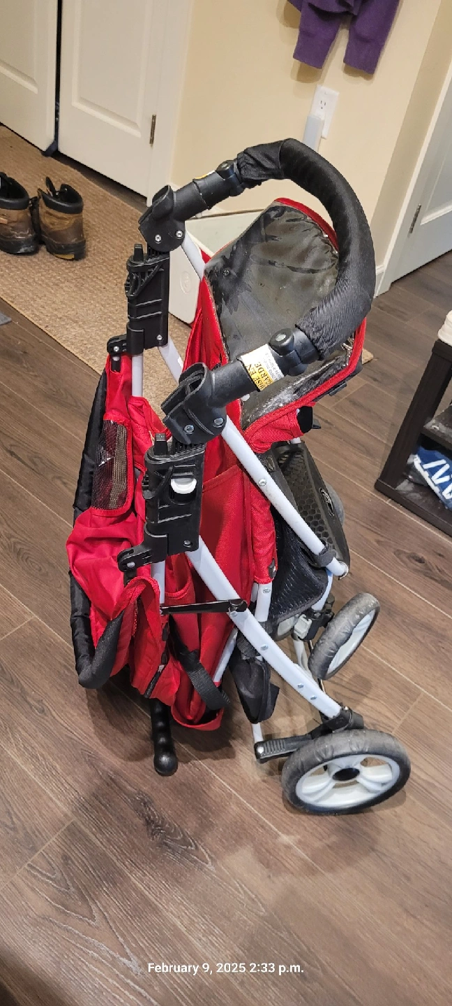 Selling a stroller in red! It's in good condition and ready for new adventures. This stroller is lightweight and easy to fold, making it perfect for city living or travel only used it a couple of times for my grandson