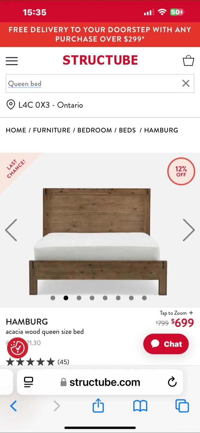 Queen size Bed Frame, Leather Headboard, Mattress and BoxSpring