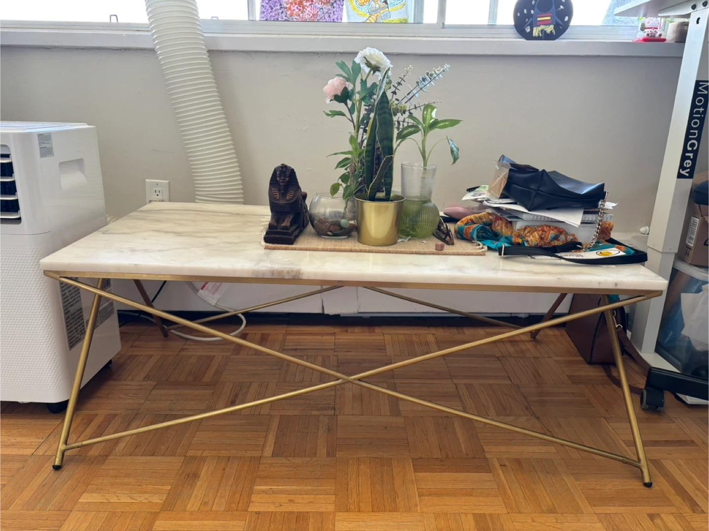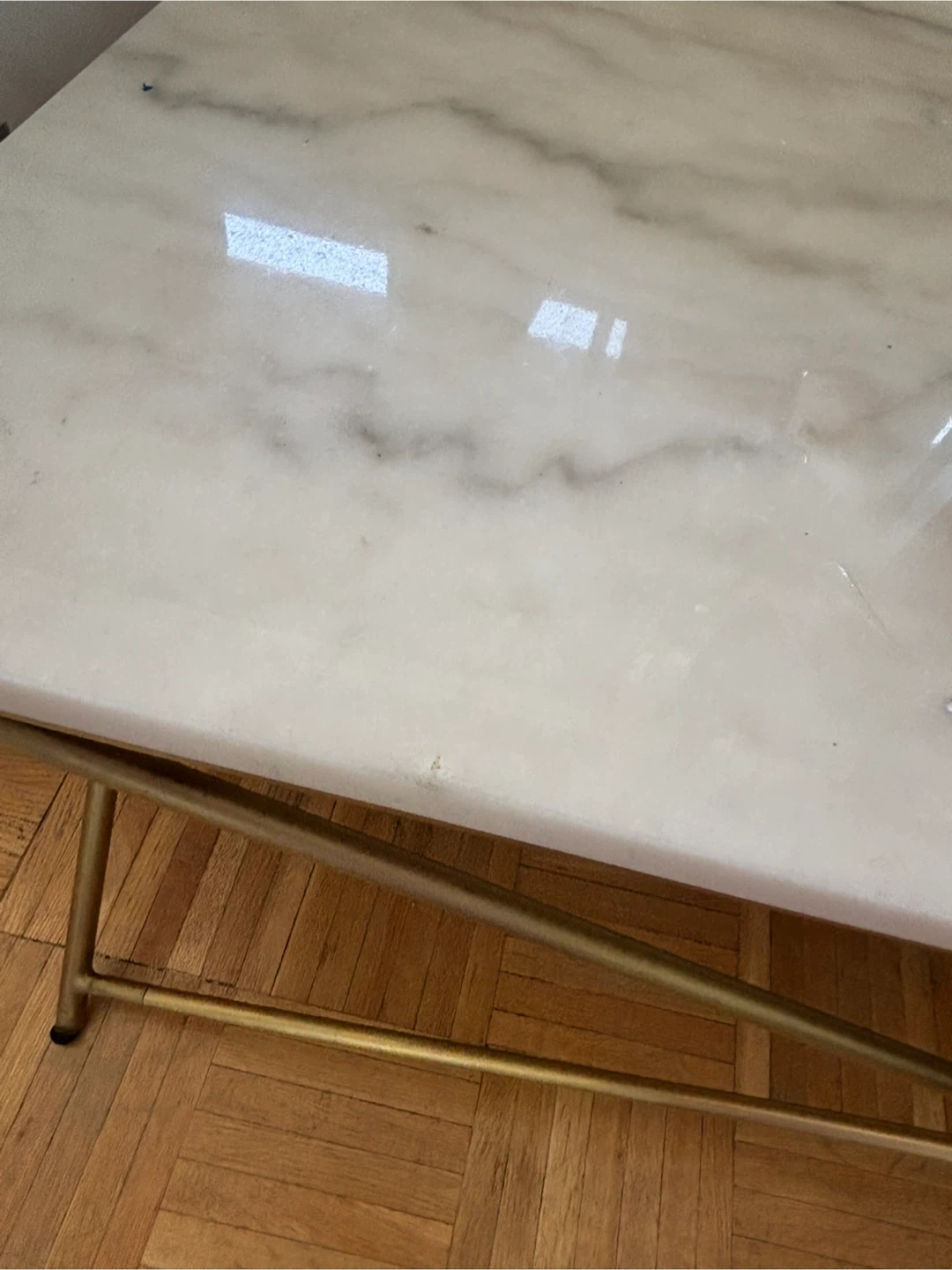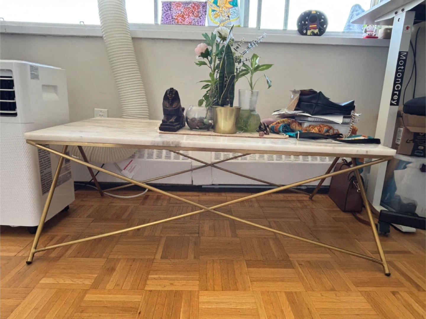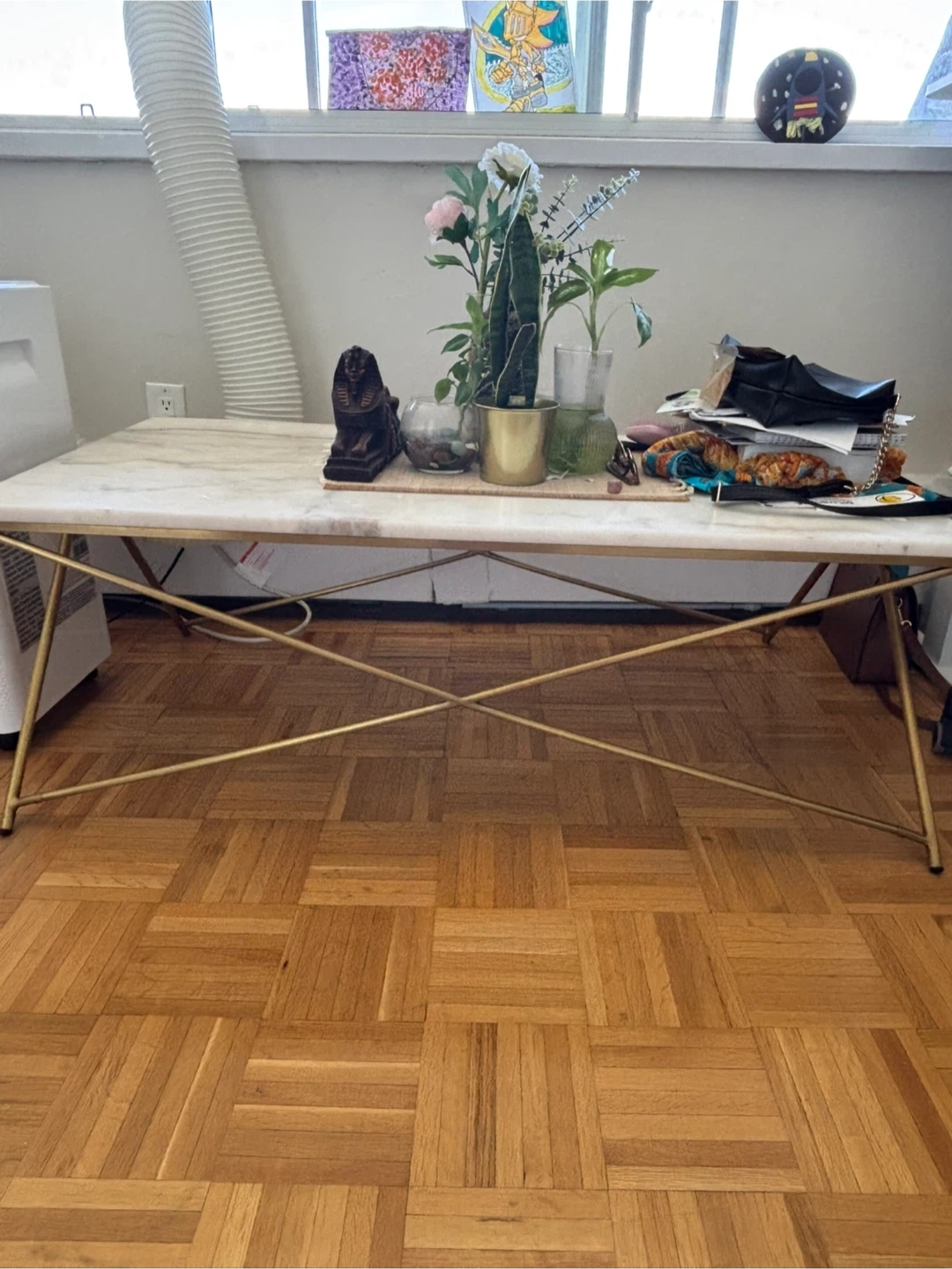 Selling a beautiful marble coffee table with stylish gold legs. It's a great centrepiece for any living room! The marble top has a lovely natural pattern.