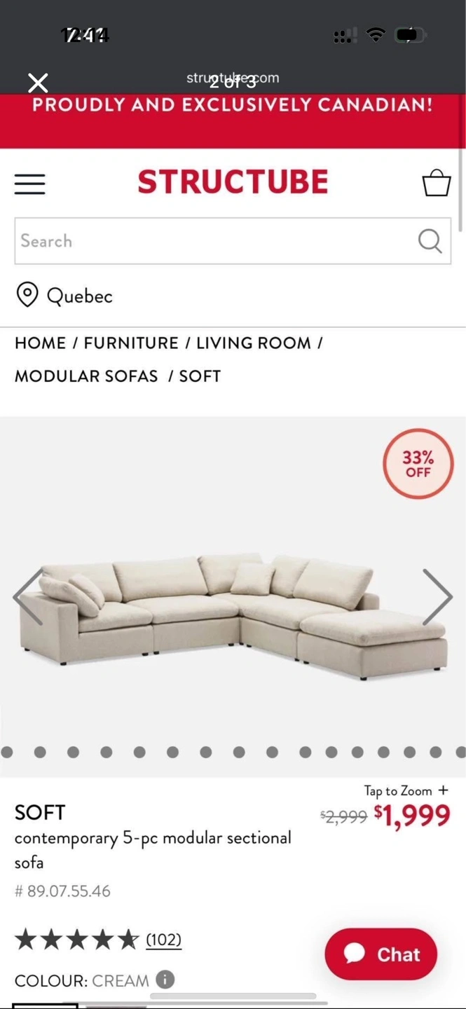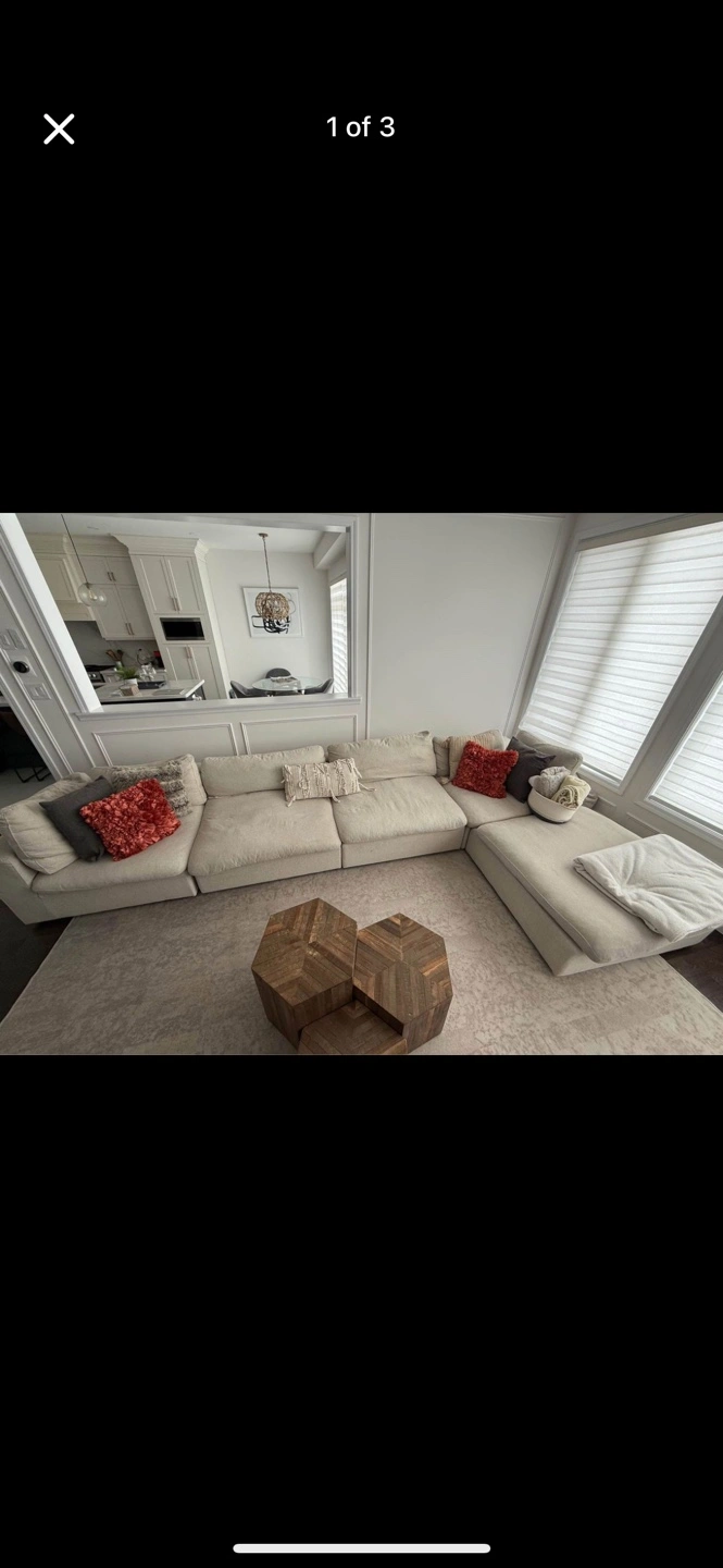 Cream coloured 5-piece modular sectional sofa. Contemporary style. Includes multiple cushions. Excellent condition.b Modular and can be arranged however you want Cushion covers can come off for cleaning Low maintenance couch From smoke free, pet free home Dimensions in photos Pick up only