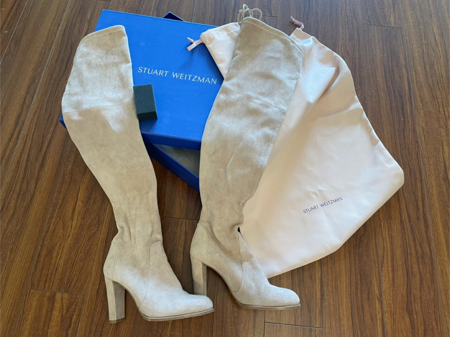 Selling a pair of Stuart Weitzman over-the-knee boots in a beautiful beige colour. They are size 6 1/2 and come with the original box and dust bag. These are in great condition and ready for a new home!