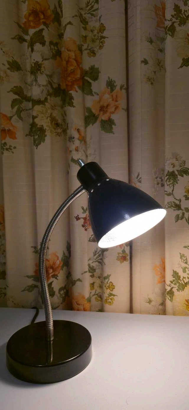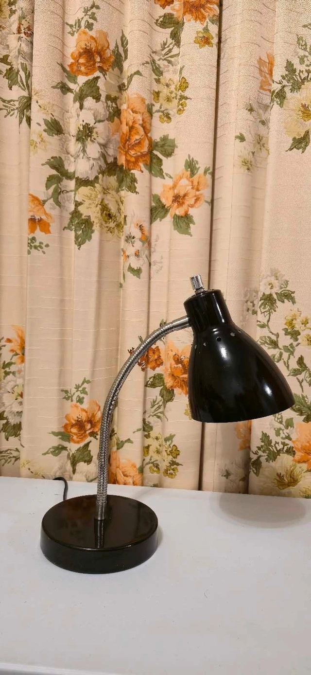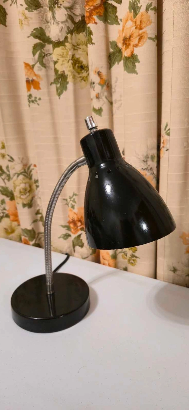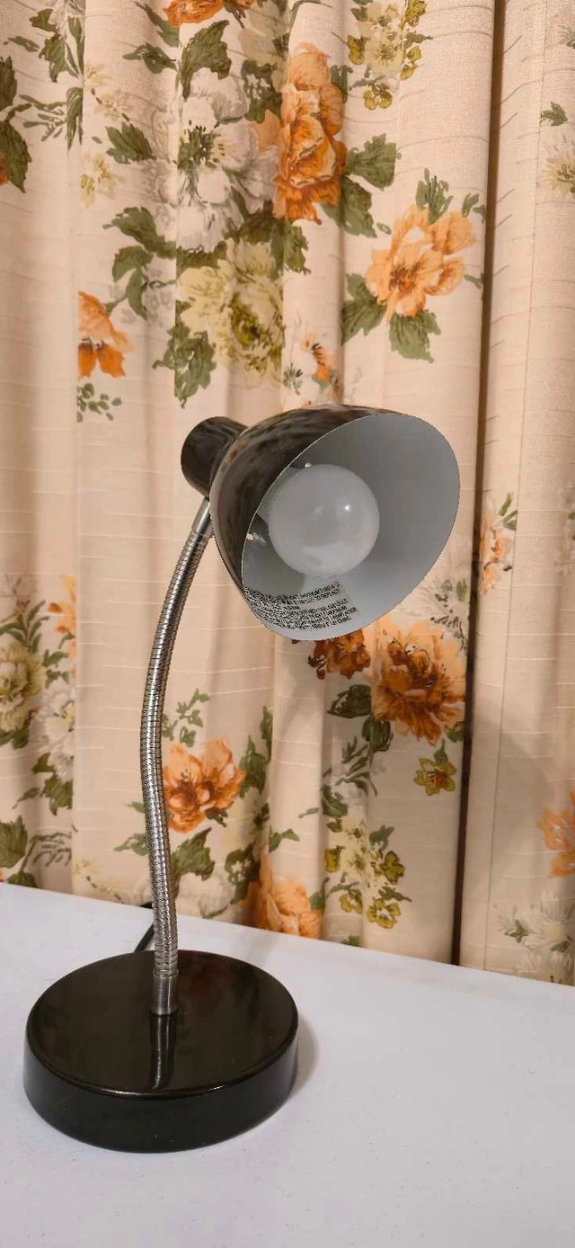 This study lamp is perfect for providing focused light while you work or read! It's in used-good condition and ready to brighten up your workspace. It features an adjustable gooseneck, allowing you to direct the light exactly where you need it. The lamp has a sturdy base and a simple on/off switch. It's available!