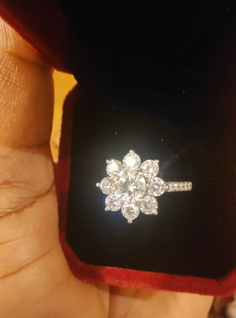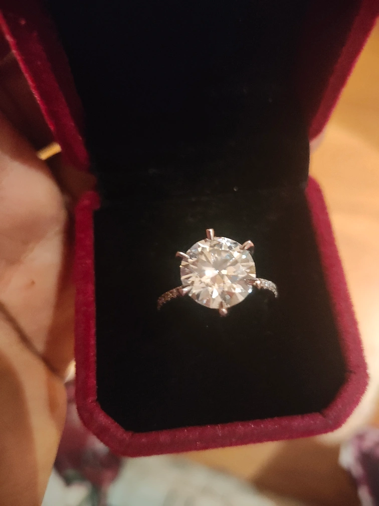 Beautiful solitaire moissanite ring. Sparkling centre stone. Elegant design. Comes in a red velvet box.