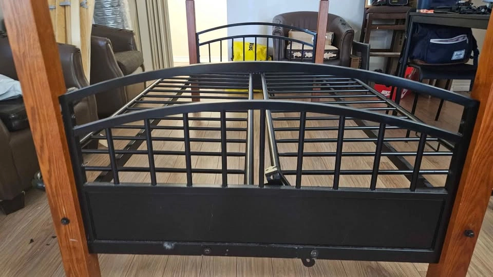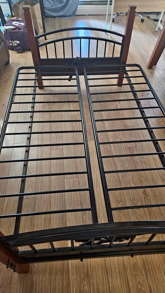 Solid build, no damage, no squeaks. Easy to assemble and fits queen bed. - Strong and stable support - Clean, modern look that fits any room - Disassembles easily for transport - Priced to sell Great for upgrading a room or setting up a guest bed. Pickup near Southgate mall. Cash only.
