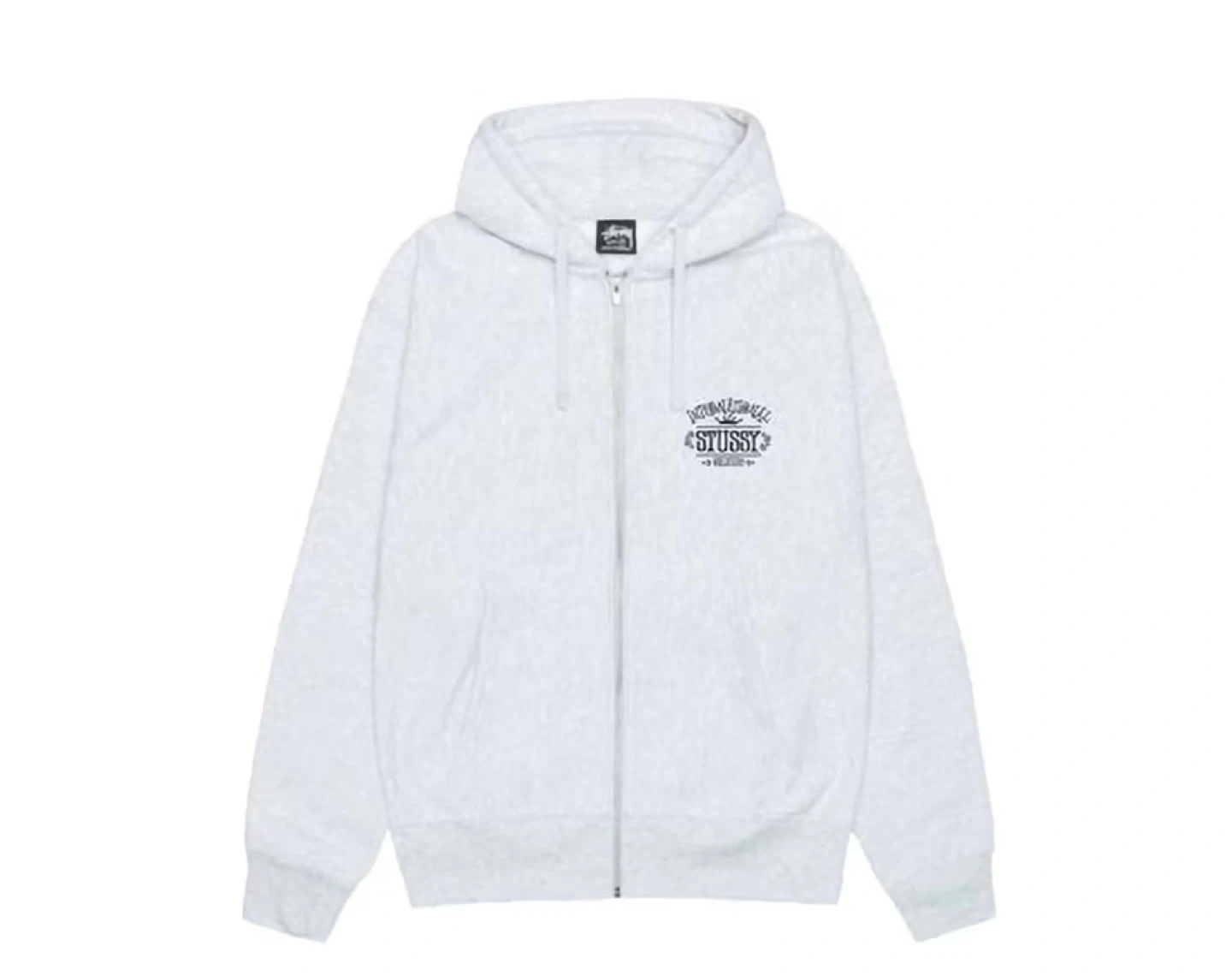 Selling a Stussy International zip-up hoodie in grey! It's in great condition and features the classic Stussy logo on the front and back. Perfect for layering or wearing on its own!