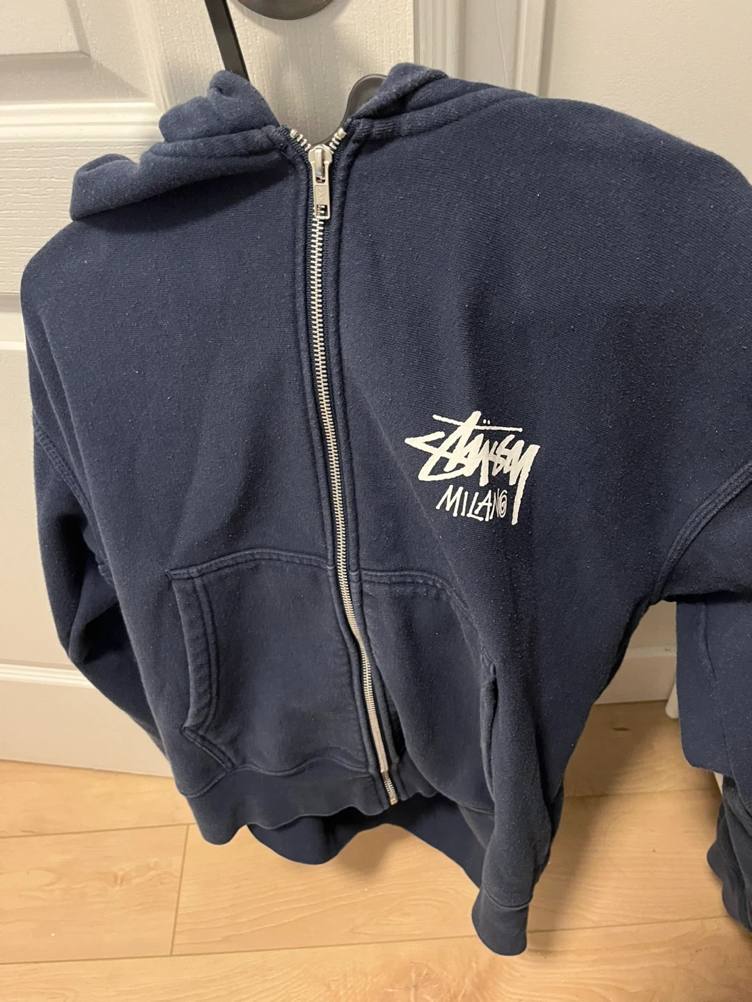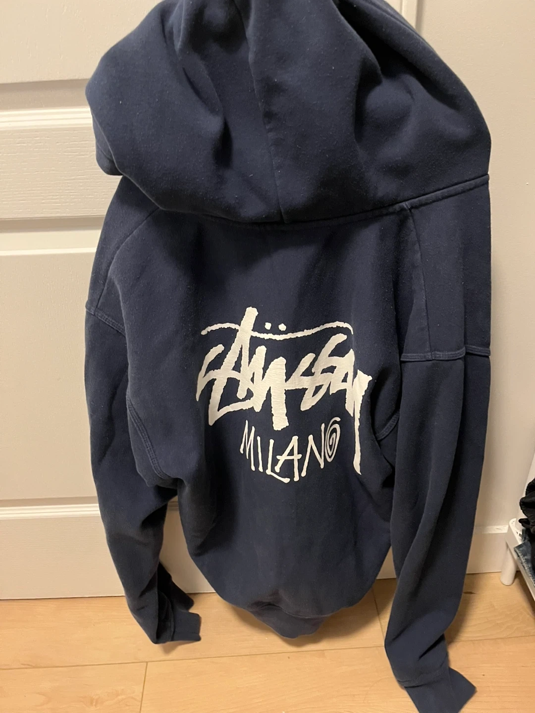 Selling a Stussy Milano full zip hoodie in size medium! It's made of 70% cotton and 30% polyester. This comfy hoodie is perfect for layering or just lounging around. It has a cool design on the back. Get it before it's gone!