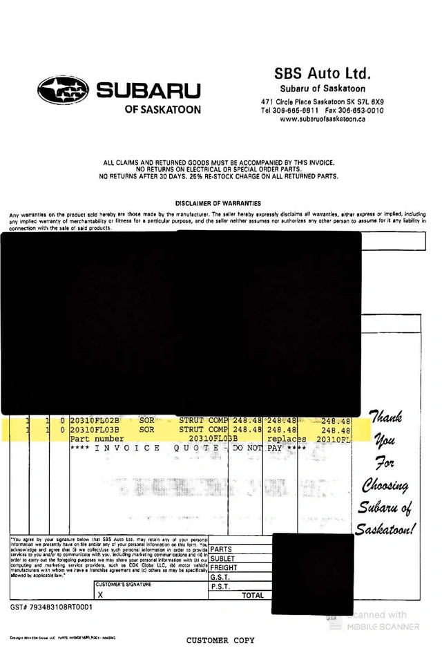 Subaru Impreza Struts 2017-2019 $375 - For 54 different trim variants of 2017-2019 Subaru Impreza - LH & RH OEM Complete strut assemblies from Subaru of Saskatoon. - These run $248 + tax each from the dealership. - Check for yourself if they are compatible: LH: - Part Number: 20310FL03B - Supersession(s): 20310FL03A RH: - Part Number: 20310FL02B - Supersession(s): 20310FL02A - CASH ONLY. - First come, first served! No reserves! - PICK UP in Sutherland ONLY. Only with an arranged time, I'm not waiting all day for someone to possibly show up.