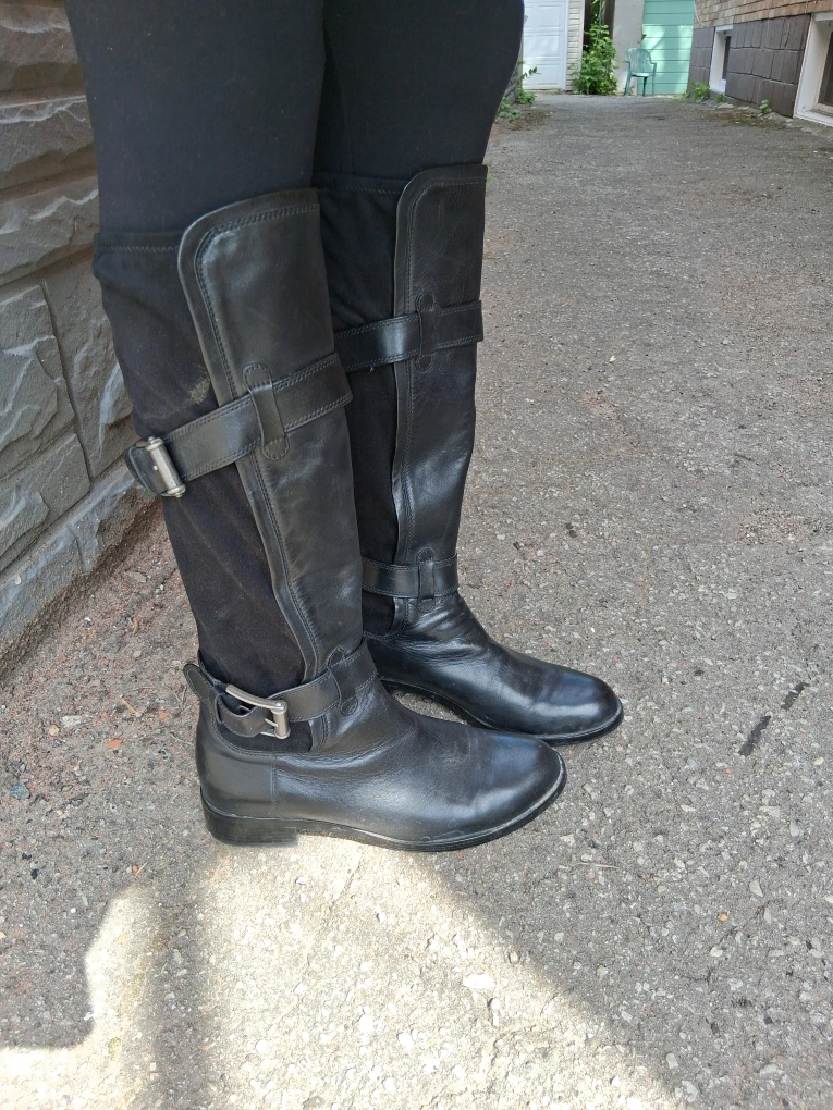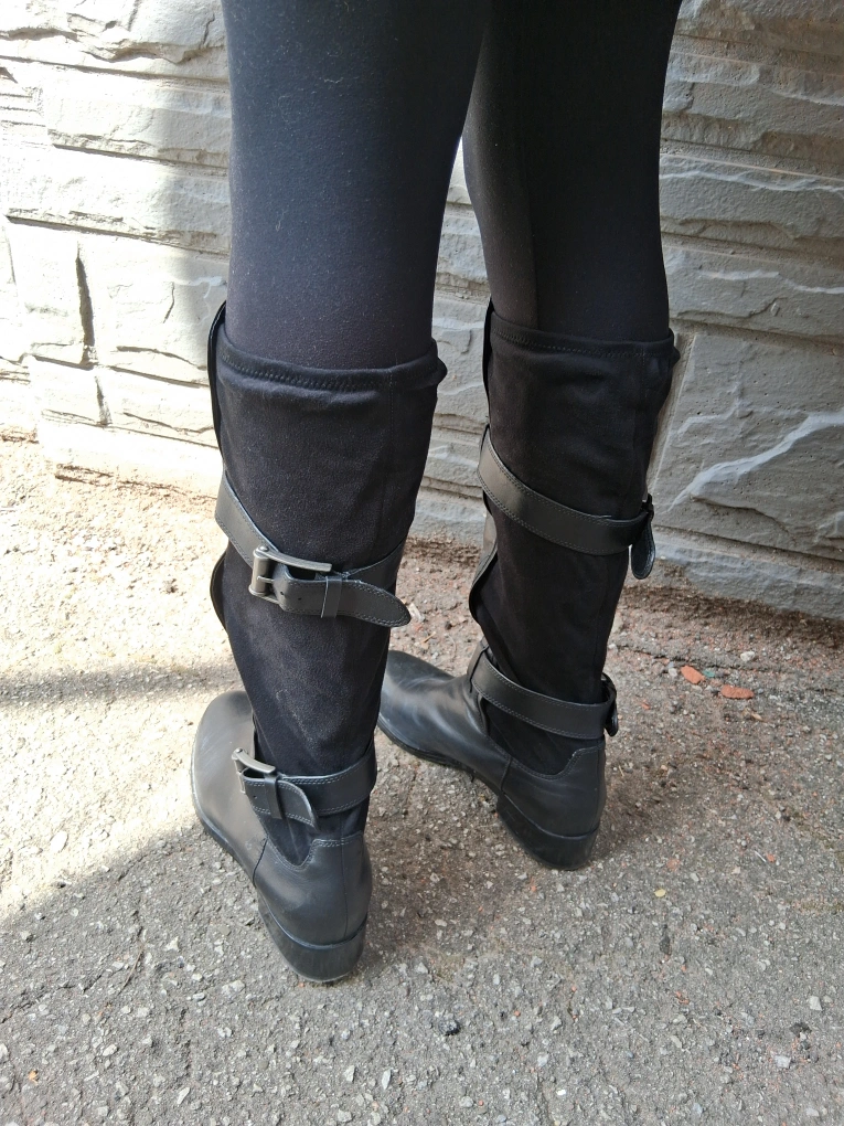 Cole Haan Avalon Air Buckle Boots Black leather boots with suede sides and two straps that buckle size 9 mint condition pick up by Keele and Humberside or Keele station