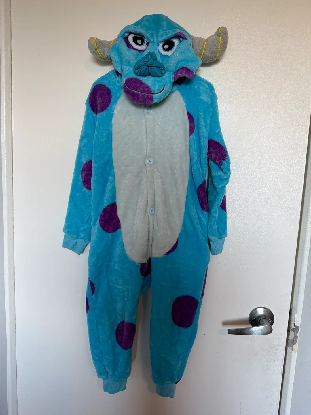 Selling Toddler’s Sully onesie costume, inspired by Monsters Inc! It's a cozy and fun outfit, perfect for lounging or costume parties. Fits 3-5 years. The onesie is in great condition and features the iconic blue fur with purple spots and Sully's friendly face on the hood