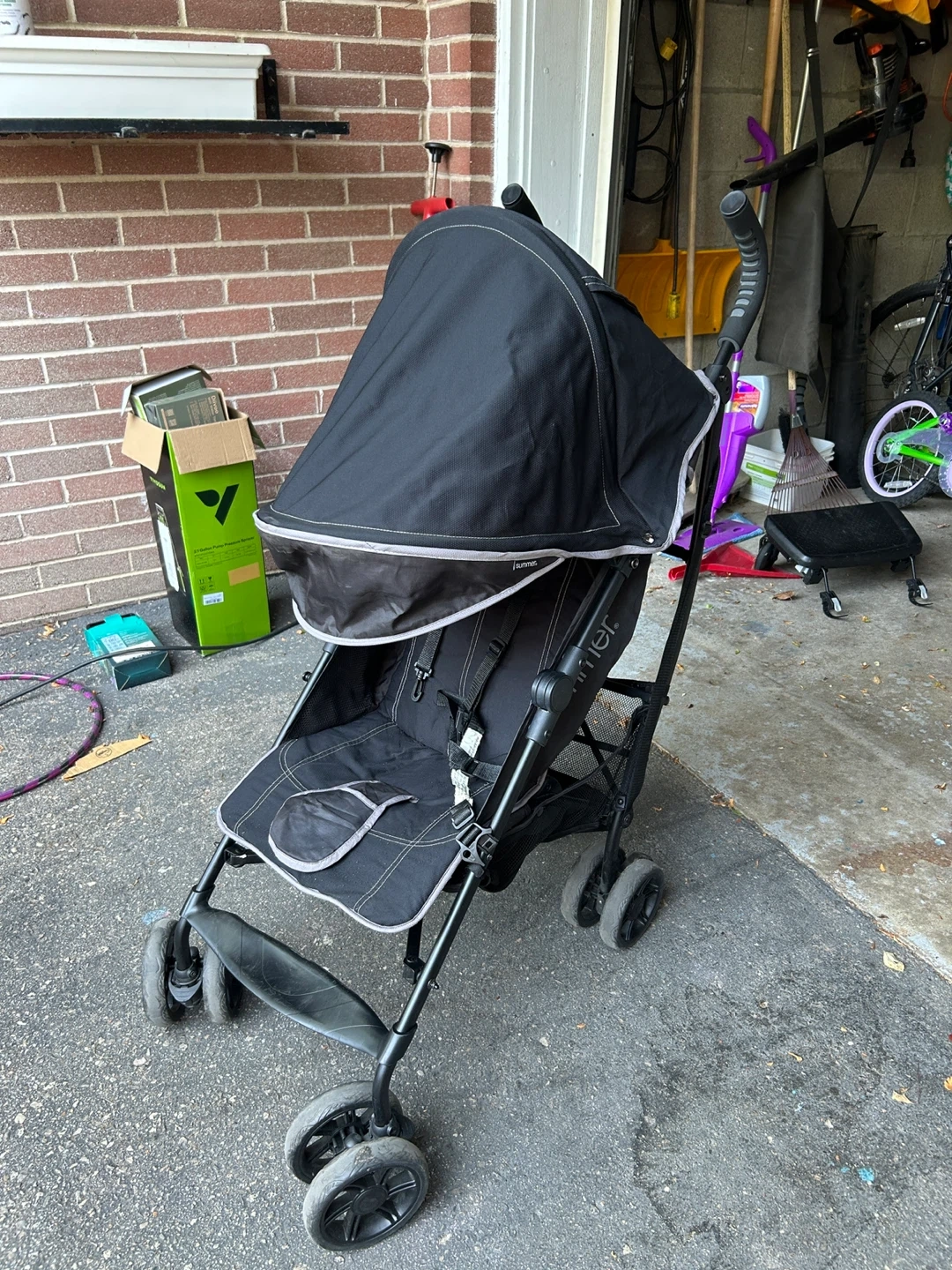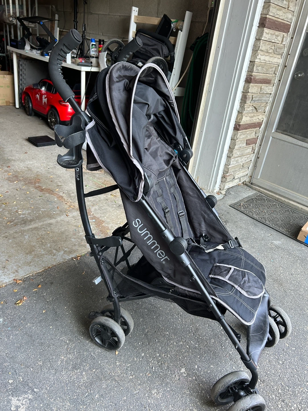 Selling a gently used Summer Infant 3D Lite Convenience Stroller in black. It's lightweight and easy to fold, making it perfect for travel or quick trips around town. It's in great condition and ready for a new home!