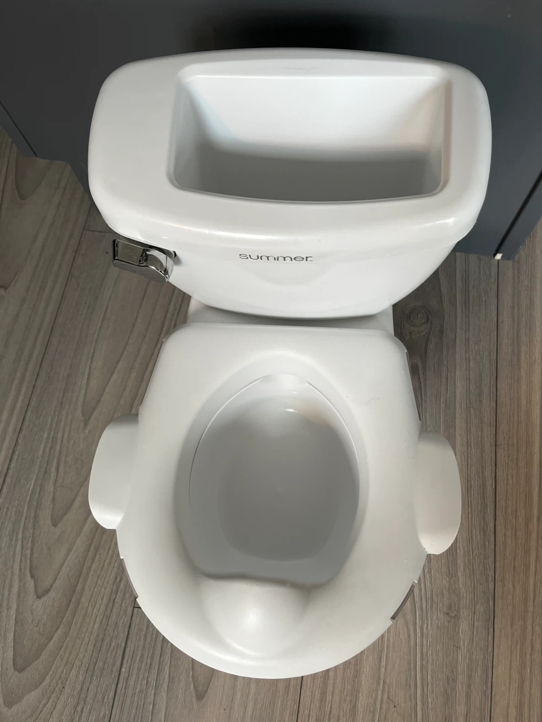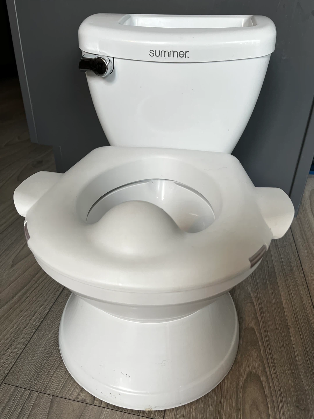Selling a Summer Infant My Size Potty! It's in like-new condition and is designed to resemble an adult toilet to help with potty training. It features a realistic flushing sound and a built-in wipe compartment to promote good hygiene habits for your little one