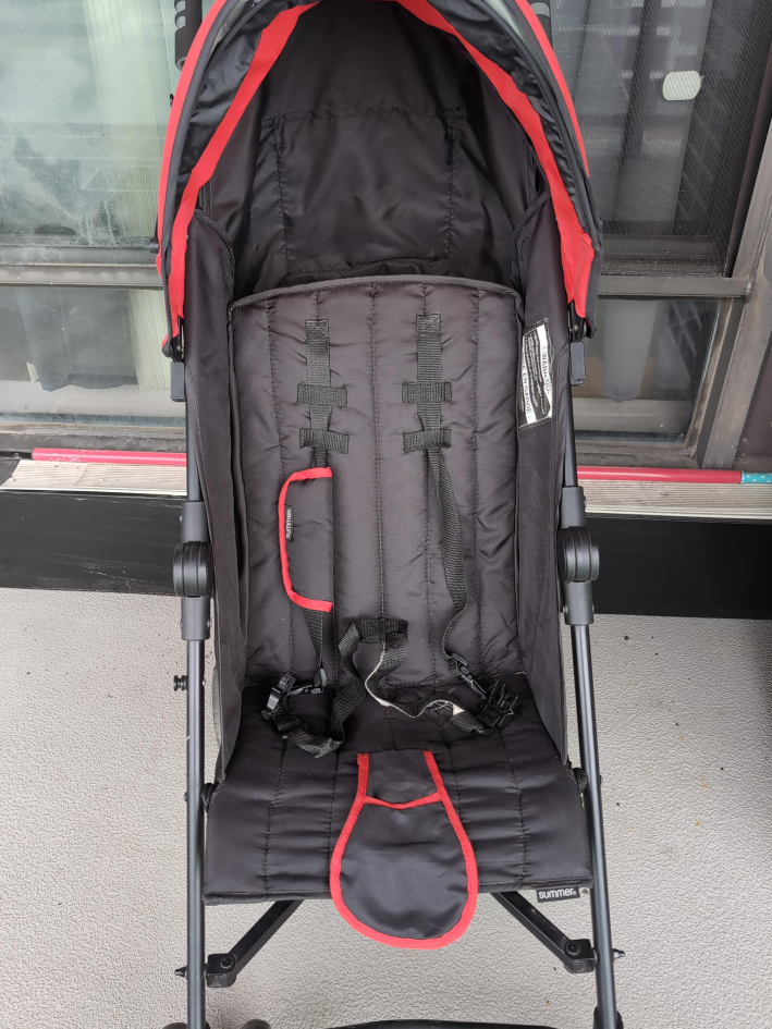 Selling a stroller from Summer Infant. It's in great shape and ready for a new home! The stroller is black with red accents.