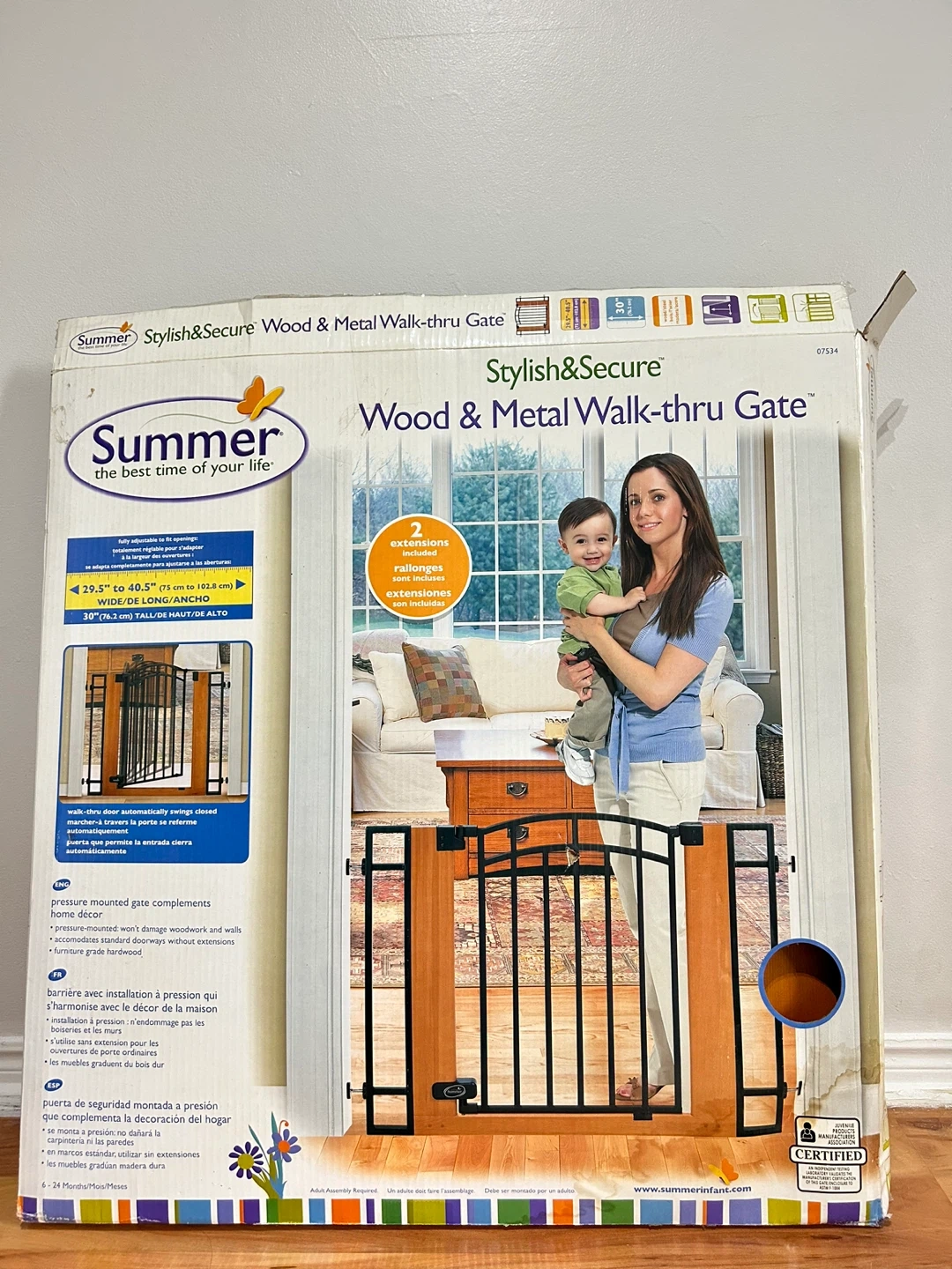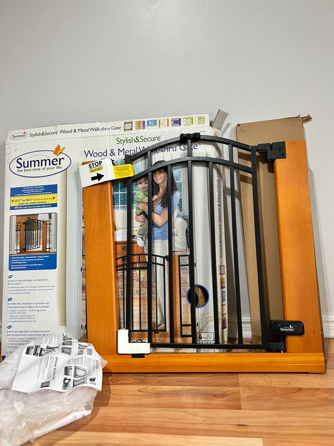 π Brand New Hardwood Walk-Through Gate β 30.5β Tall β Walnut Finish Never opened, in original box. Premium quality gate with: Furniture-grade hardwood + metal hardware Auto-close walk-through door (opens both ways) Pressure-mounted for easy installation (no drilling required) JPMA certified for safety Stylish walnut finish to match your home dΓ©cor Ideal for doorways and top or bottom of stairs It fits openings 29.3" to 46.5" (74.4 cm to 118.1 cm) with the two included extensions. π° Price: $125 Only asking about 70-80% of typical retail for a brand-new unit. Why pay full price when you can get the same in perfect condition, boxed?