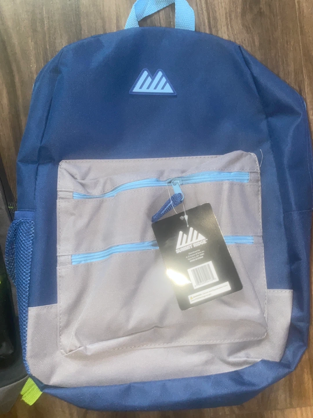 Here's a Summit Ridge backpack in a nice blue and grey colour combination! It's in new with the tags still on. Perfect for school or day trips!