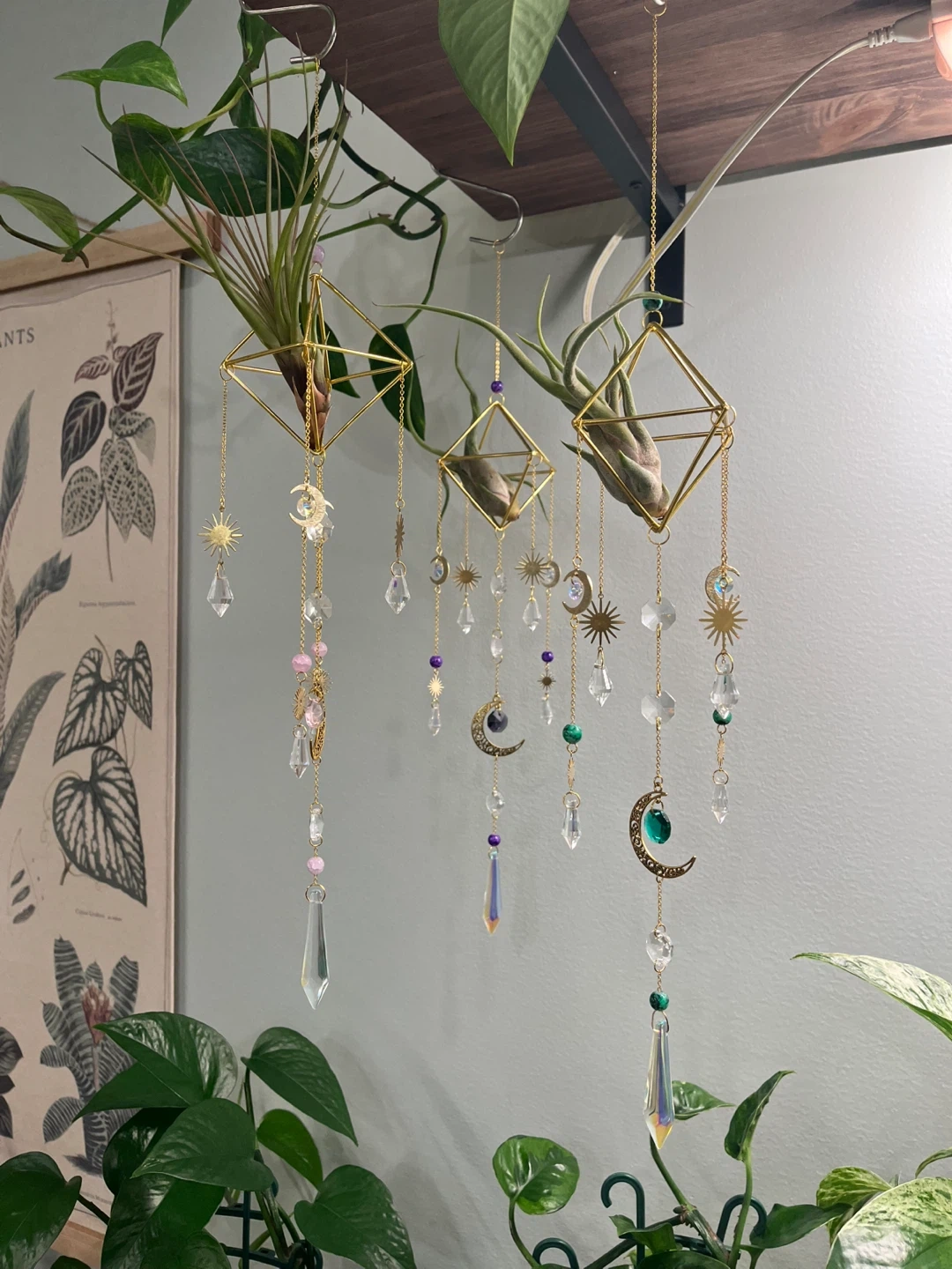 New Airplant Suncatchers featuring celestial charms and crystals available for $20 each at my shop The Plant Witch. Price does not include the Airplants as I have a variety available for sale in my shop and price depends on the type and size you choose. Prices range from $6 and up. Pick up at The Plant Witch in Erin Ridge, St.Albert Check out my other listings or go to my website theplantwitch.ca to view all my listings for different potted plant varieties, suncatchers, propagation jars, decorative pot stakes and more! 🪴🌞
