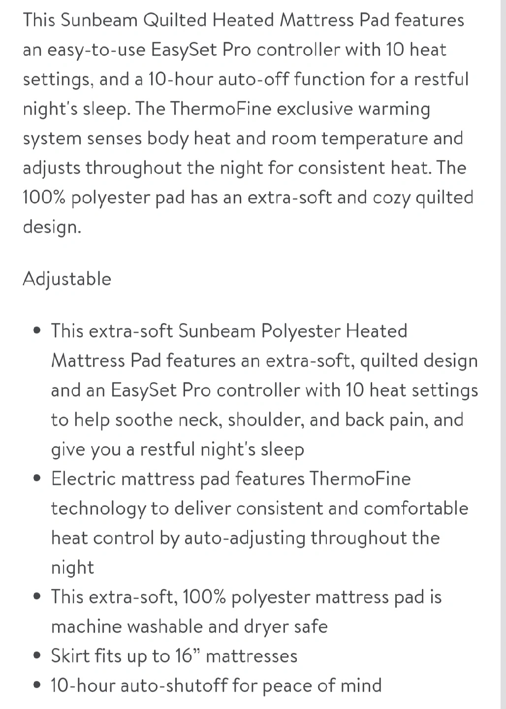 Sunbeam Quilted Heated Mattress Pad, Queen